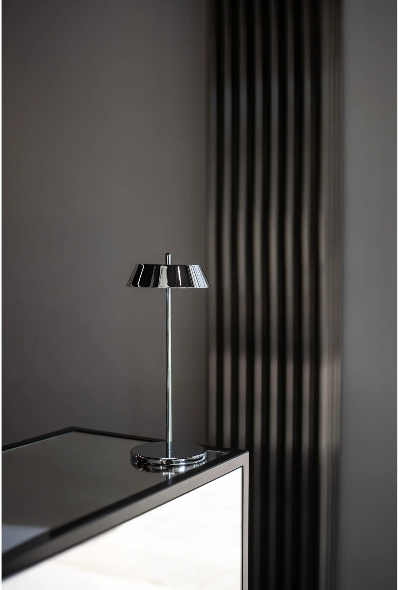 Lampa stołowa VERLO OXFORD to eleganckie i nowoczesne źródło światła, które wpasuje się w każde wnętrze – od sypialni, przez salon, aż po taras. Smukła, chromowana obudowa w wysokim połysku nadaje lampie wyjątkowej elegancji, a regulacja barwy i natężenia światła pozwala dopasować oświetlenie do każdej chwili – od relaksu po pracę.