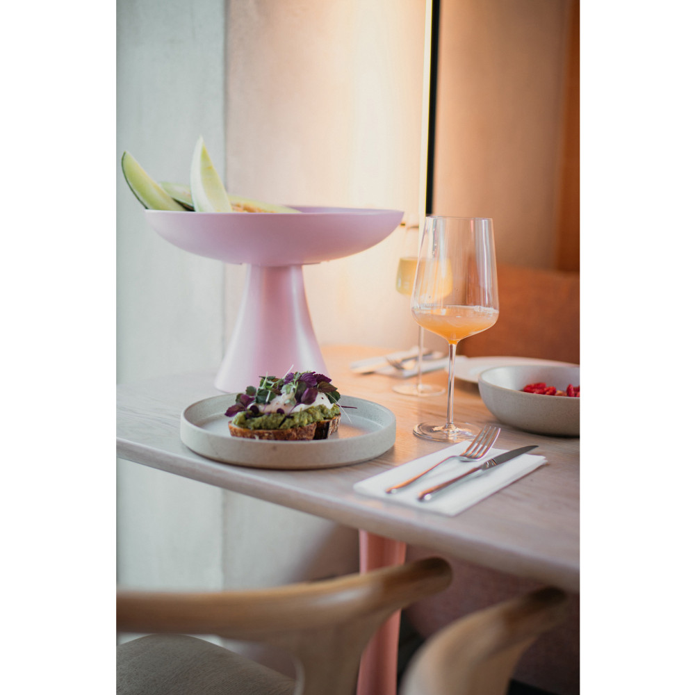 Forma naczyń z kolekcji LESS jest zachwycająco prosta, co czyni je idealnymi do wielu kompozycji dań lub różnych stylów dekoracji stołu. Kolekcja ta zawiera talerze głębokie, płaskie, talerzyki, kubki, filiżanki do espresso oraz spodki. Charakterystyczną cechą tej porcelany jest mocno zarysowany, gruby rant, który dodaje im wyjątkowego uroku.