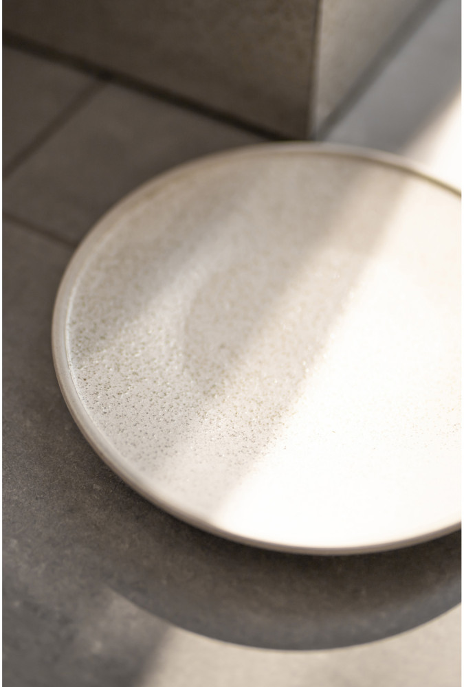 Kolorystyka porcelany LESS to piękny, naturalny kolor porcelany przypominający odcień piasku pustyni, który dodaje elegancji i harmonii każdej aranżacji stołu. Surowe, nieco szorstkie wykończenie zewnętrznej strony naczyń nadaje im wyjątkowego charakteru, podczas gdy delikatnie szkliwione wnętrze jest ozdobione subtelnie rozsypanymi drobinkami kruszcu, co nadaje im subtelny blask i elegancję.