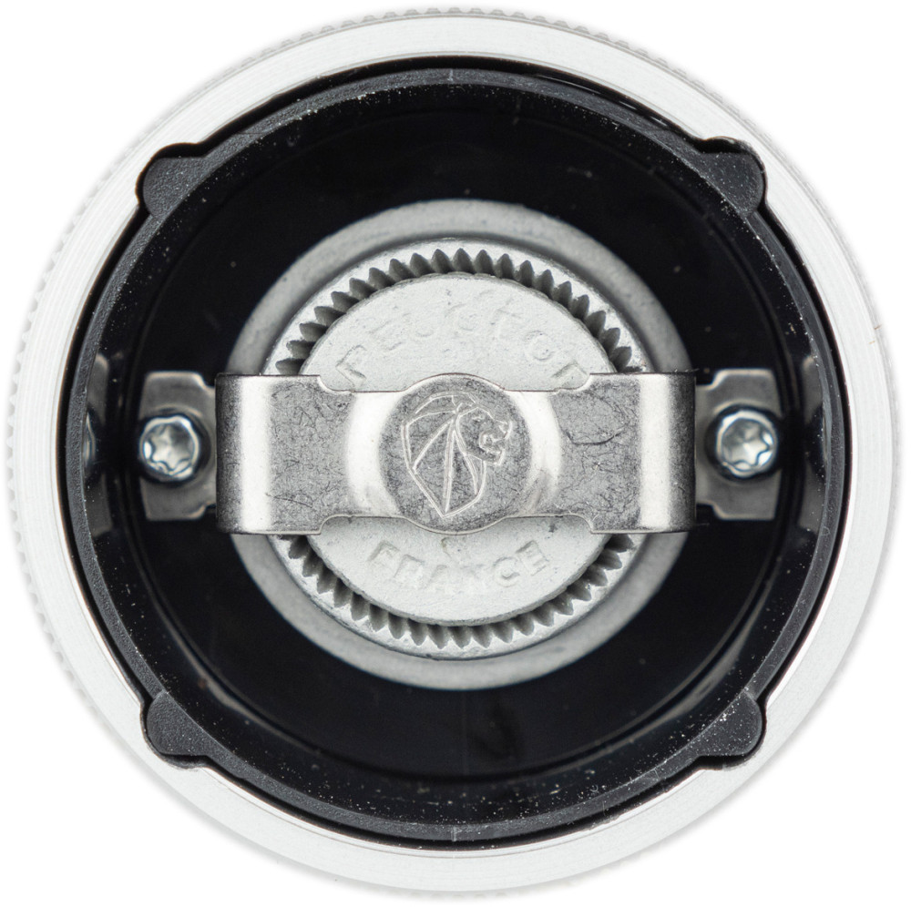 Ustawienie grubości mielenia w młynkach PEUGEOT może odbywać się bądź poprzez tradycyjną płynną regulację dzięki dokręceniu pokrętła w górnej części korpusu, bądź w przypadku młynków z mechanizmem uSelect, przez wybór jednego z 6 stopni grubości mielenia (1 dla najdrobniejszego, 6 dla najgrubszego).