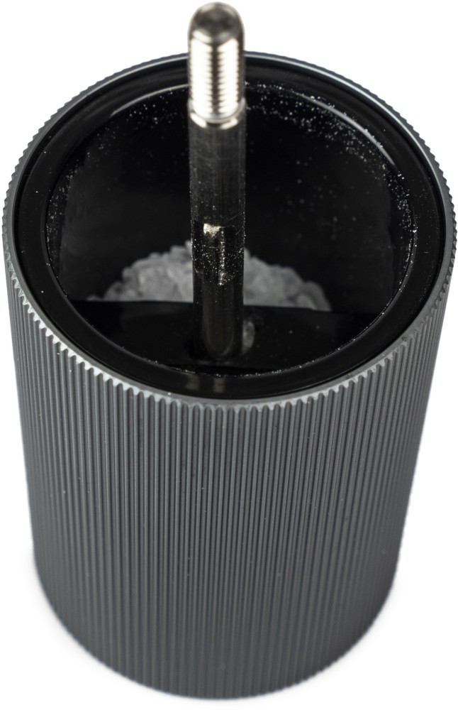 Młynki doskonale prezentuje się na stole i w kuchni. Mechanizm mielący to autorska precyzyjna konstrukcja objęta dożywotnią gwarancją. Dostosowanie grubości mielenia odbywa się poprzez dokręcenie pokrętła w górnej części korpusu. Młynki do soli i pieprzu można dowolnie komponować w ramach dostępnych wariantów Natural Aluminium i Dark Carbone.