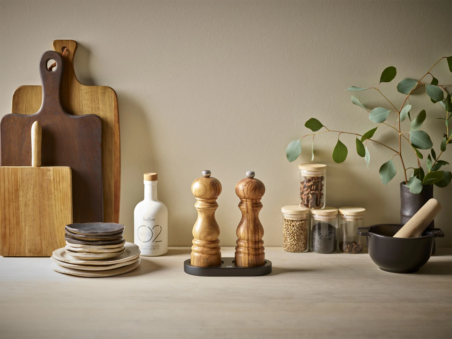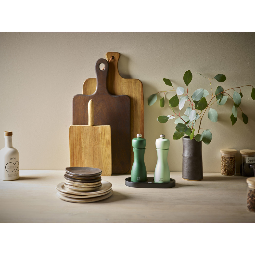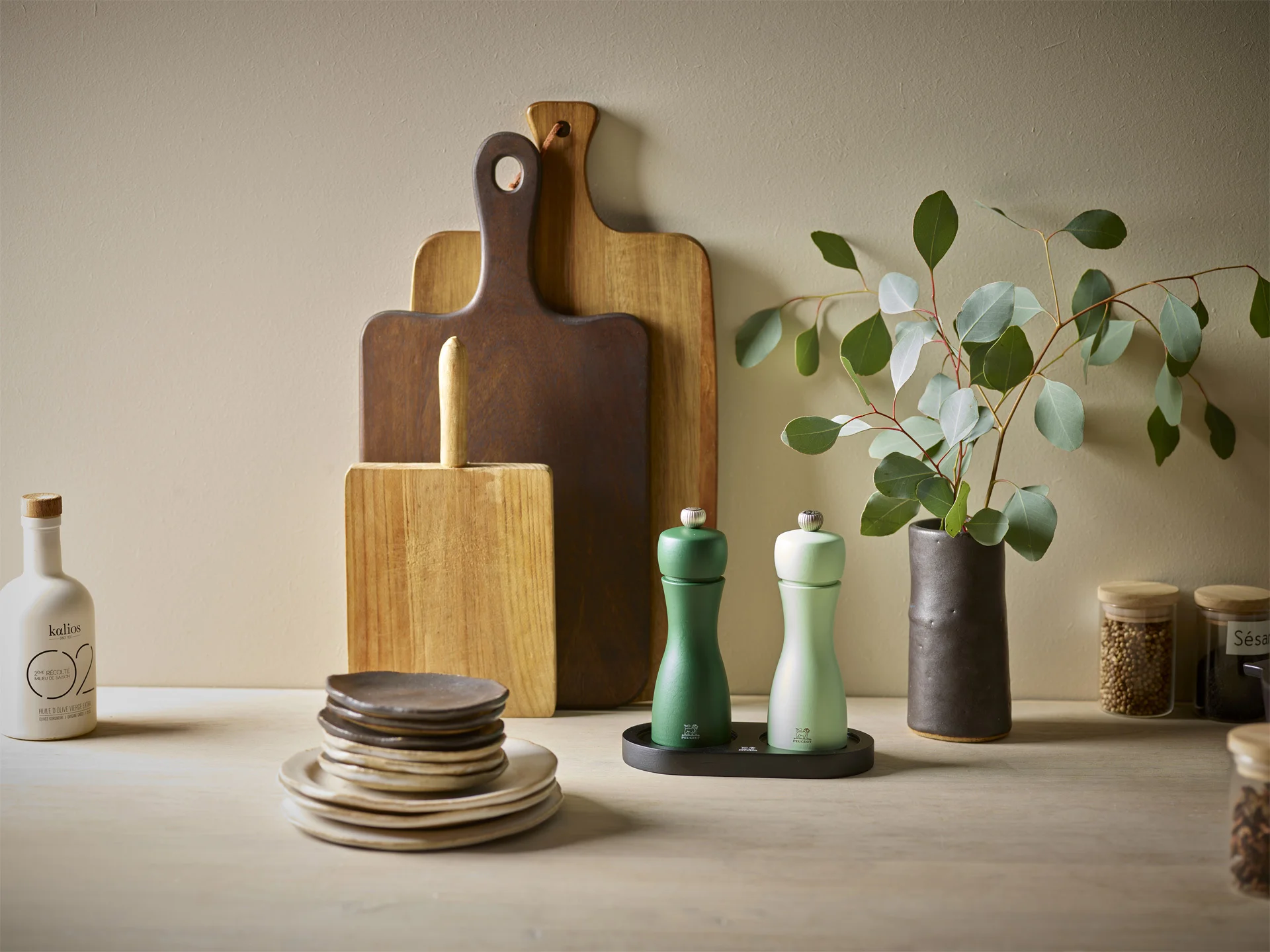 Bambusowa podstawka Linea marki Peugeot to idealne rozwiązanie do prezentacji zestawu młynków. Podstawka pod młynki pozwala uniknąć zabrudzenia kuchennego blatu lub stołu resztkami zmielonych przypraw.