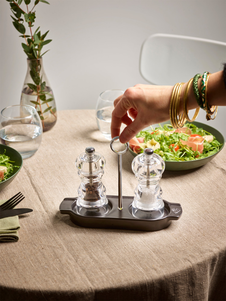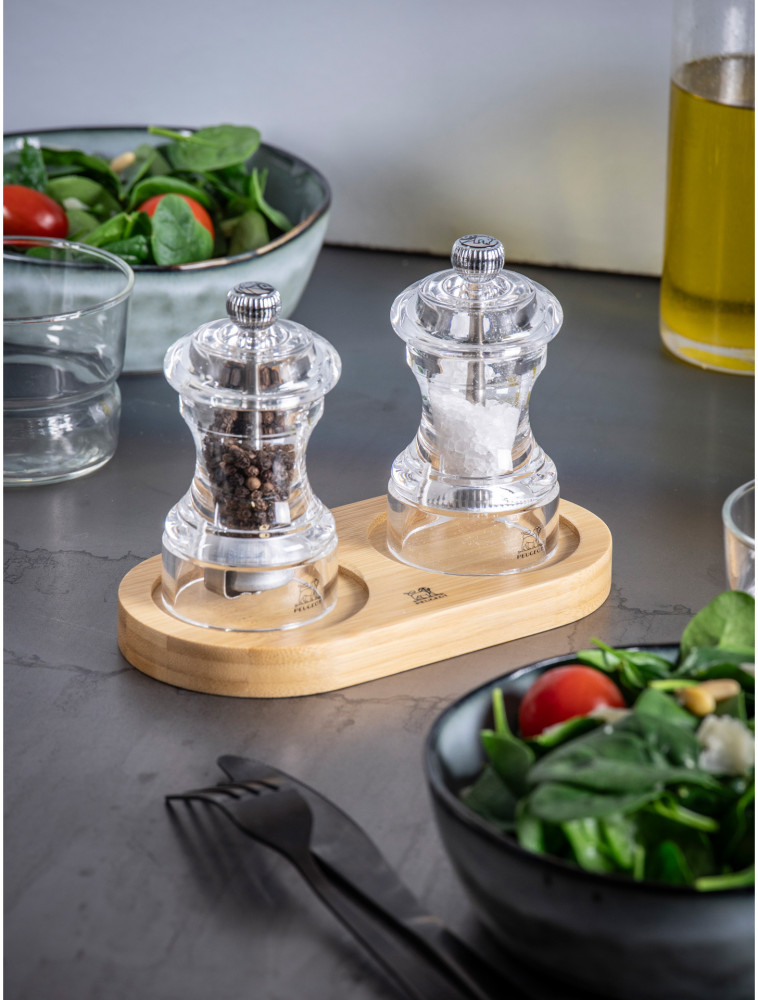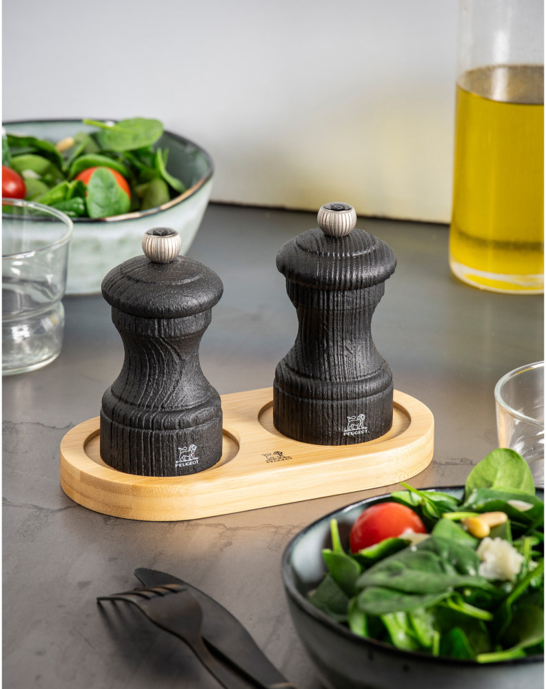 Bambusowa podstawka Linea marki Peugeot to idealne rozwiązanie do prezentacji zestawu młynków. Podstawka pod młynki pozwala uniknąć zabrudzenia kuchennego blatu lub stołu resztkami zmielonych przypraw.