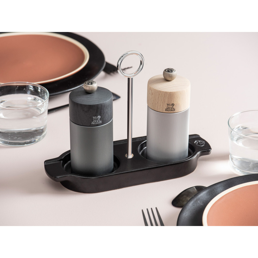 Ceramiczna podstawka Linea marki Peugeot to idealne rozwiązanie do prezentacji zestawu młynków. Podstawka pod młynki pozwala uniknąć zabrudzenia kuchennego blatu lub stołu resztkami zmielonych przypraw. Wyposażona w praktyczny uchwyt, umożliwia łatwe przenoszenie młynków, zapewniając jednocześnie ich bezpieczeństwo i stabilność.
