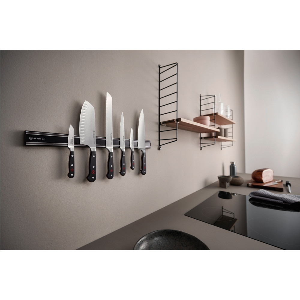 Listwa magnetyczna na noże marki Wusthof zapewnia bezpieczne i higieniczne przechowywanie noży. Mocny magnes utrzymuje noże stabilnie na miejscu, eliminując ryzyko przypadkowego skaleczenia oraz zapewniając łatwy dostęp do każdego narzędzia.