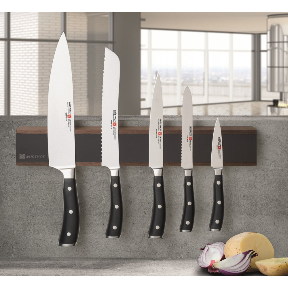 Listwa magnetyczna na noże marki Wusthof zapewnia bezpieczne i higieniczne przechowywanie noży. Mocny magnes utrzymuje noże stabilnie na miejscu, eliminując ryzyko przypadkowego skaleczenia oraz zapewniając łatwy dostęp do każdego narzędzia.