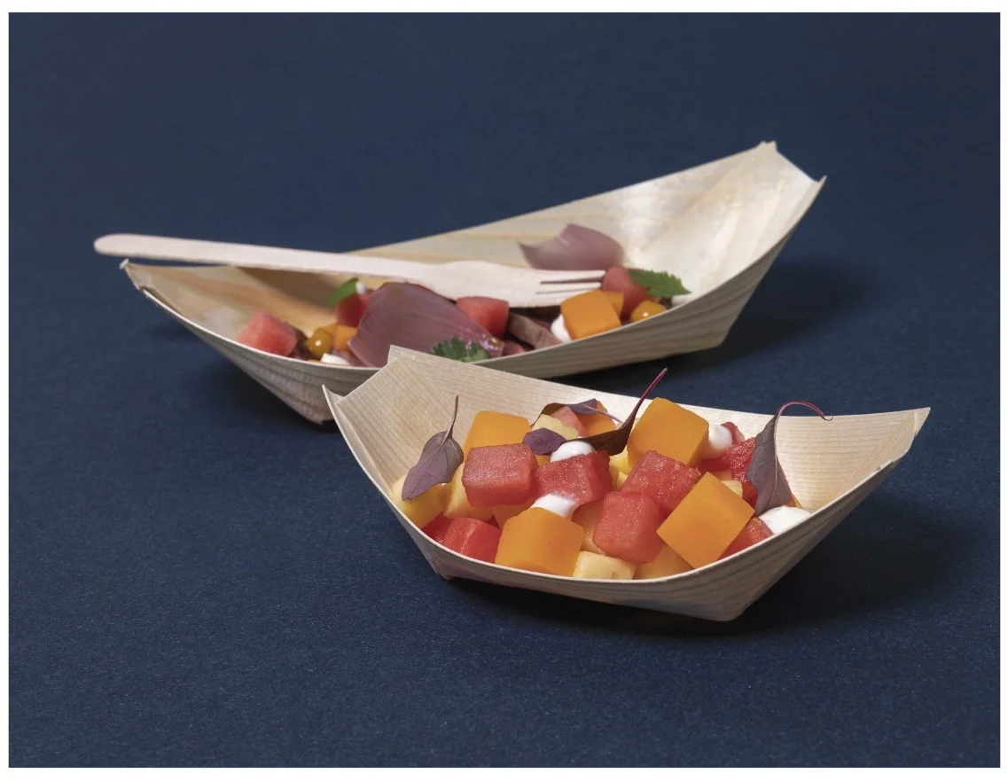 Bambusowe naczynia fingerfood to idealna propozycja na serwowanie wszelkiego rodzaju przystawek, przekąsek, koreczków, roladek czy mini hamburgerów. Z pewnością uatrakcyjnią przekąski na jeden kęs, nadając im nowoczesny wygląd. Są ekologiczne, biodegradowalne, w pełni naturalne. Specjalna struktura powierzchni podkreśla naturalny wygląd i sprawia, że każdy produkt jest wyjątkowy.