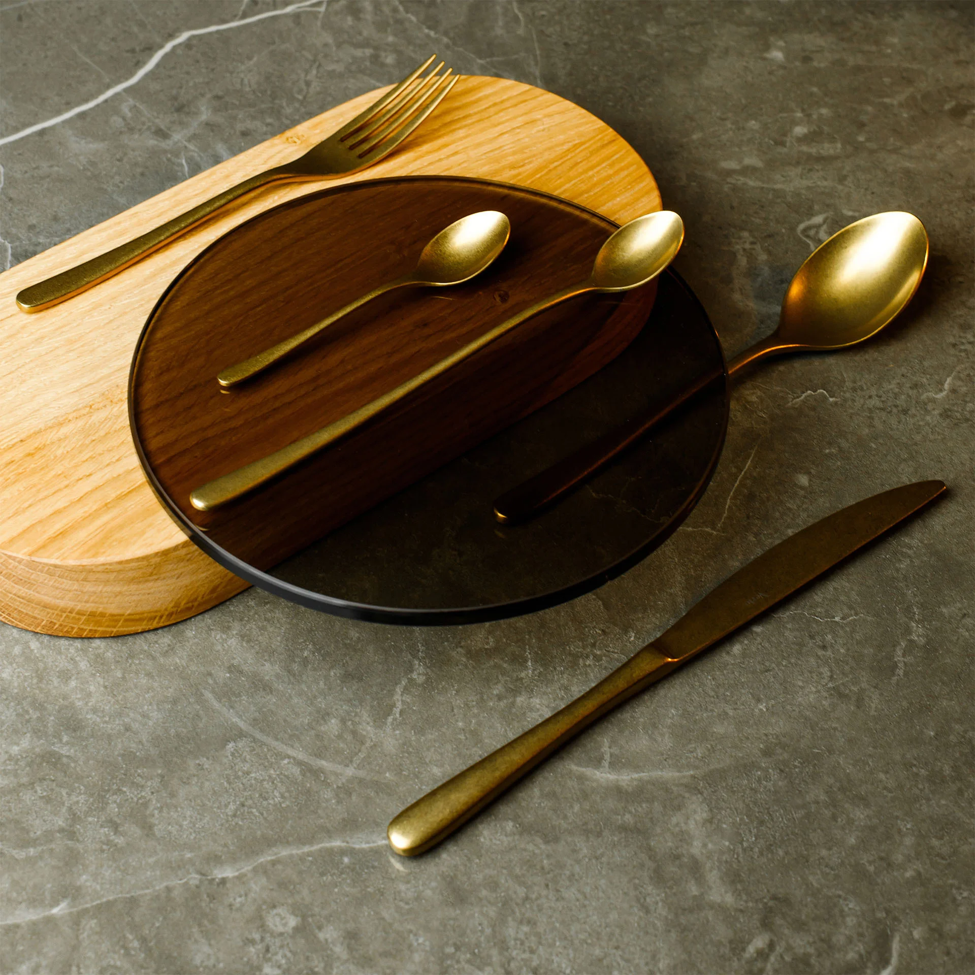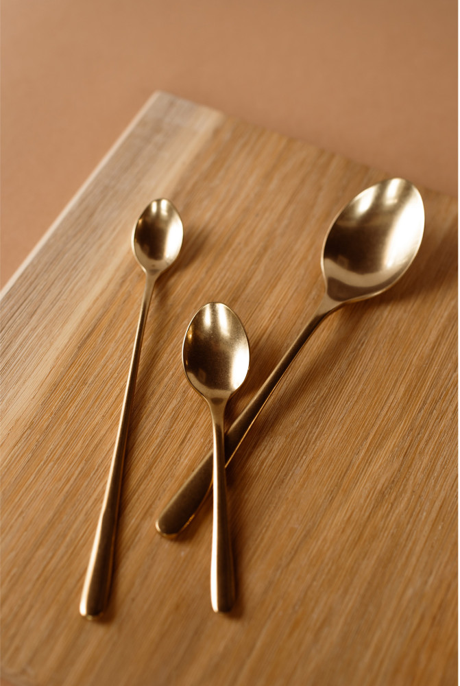 Kolekcja LUI GOLD to idealny wybór nie tylko do nowoczesnego wnętrza, ale także do klasycznej kuchni lub jadalni z ekstrawaganckim akcentem. Prosta stylistyka, brak zdobień i piękne matowe wykończenie. To kolekcja idealna dla osób poszukujących nowoczesnych akcentów. Obłe, masywne wykończenie trzonków sztućców doskonale podkreśla minimalistyczny styl tej linii.