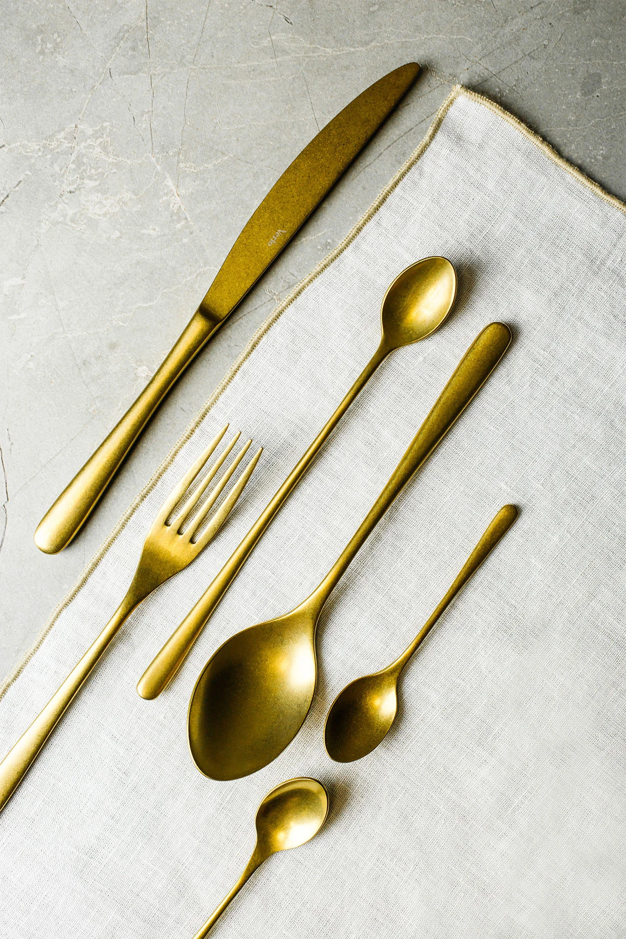 Kolekcja LUI GOLD to idealny wybór nie tylko do nowoczesnego wnętrza, ale także do klasycznej kuchni lub jadalni z ekstrawaganckim akcentem. Prosta stylistyka, brak zdobień i piękne matowe wykończenie. To kolekcja idealna dla osób poszukujących nowoczesnych akcentów. Obłe, masywne wykończenie trzonków sztućców doskonale podkreśla minimalistyczny styl tej linii.