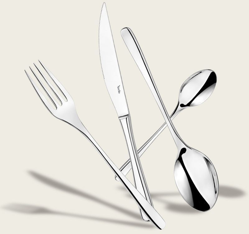 Wszystkie sztućce Verlo są doskonale wyważone. To sprawia, że pomimo różnorodności wzorów i stylów, są wygodne w użytkowaniu i idealnie „leżą” w dłoni. Sztućce wyprodukowane są z najwyższej jakości stali nierdzewnej 18/10 (skład stopu to 18% chromu i 10% niklu). Jest to najlepszy rodzaj stali wykorzystywany do produkcji tego typu zastawy stołowej.