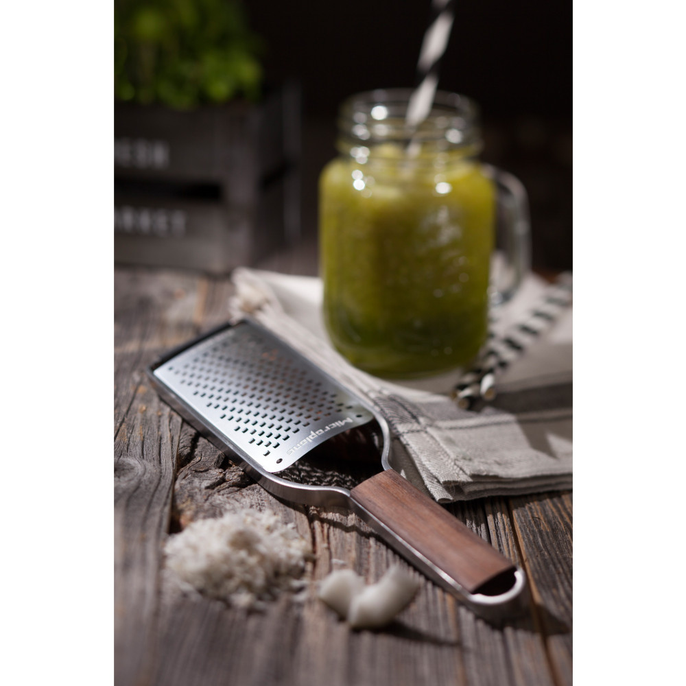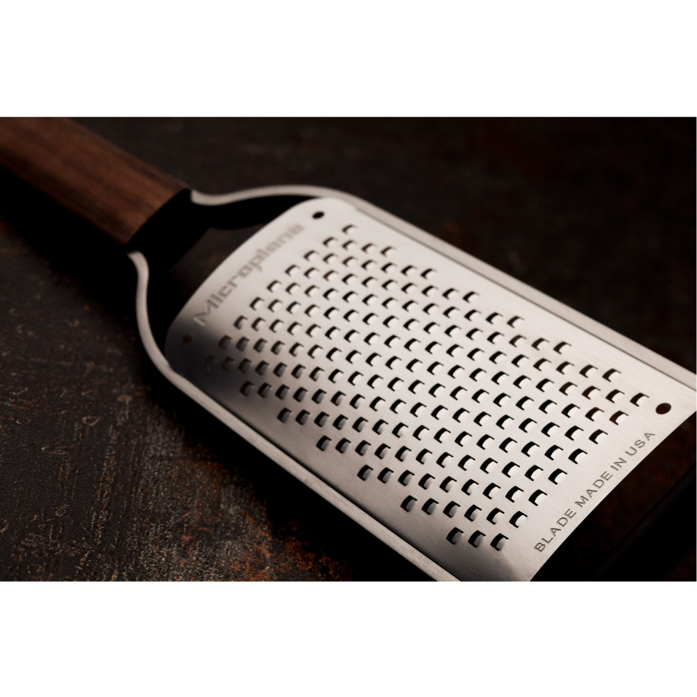 Uznana na całym świecie amerykańska firma Microplane jest producentem z 50-letnim doświadczeniem, który zastosował do produkcji tarek technologię fototrawienia - innowacyjny proces zaprojektowany specjalnie do tworzenia ultra-ostrych krawędzi tnących. Maleńkie zęby zachowują się jak niezwykle ostre noże do precyzyjnego krojenia składników. Nie rozdzierają i nie zgniatają produktów jak większość dostępnych na rynku „tarek tłoczonych”. Te specjalistyczne ostrza sprawiają, że jedzenie nie przykleja się ani nie blokuje, ale delikatnie przesuwa się po powierzchni cięcia, zapewniając doskonałe rezultaty ścierania na drobne wiórki i nitki, a produkty wilgotne na miazgę.