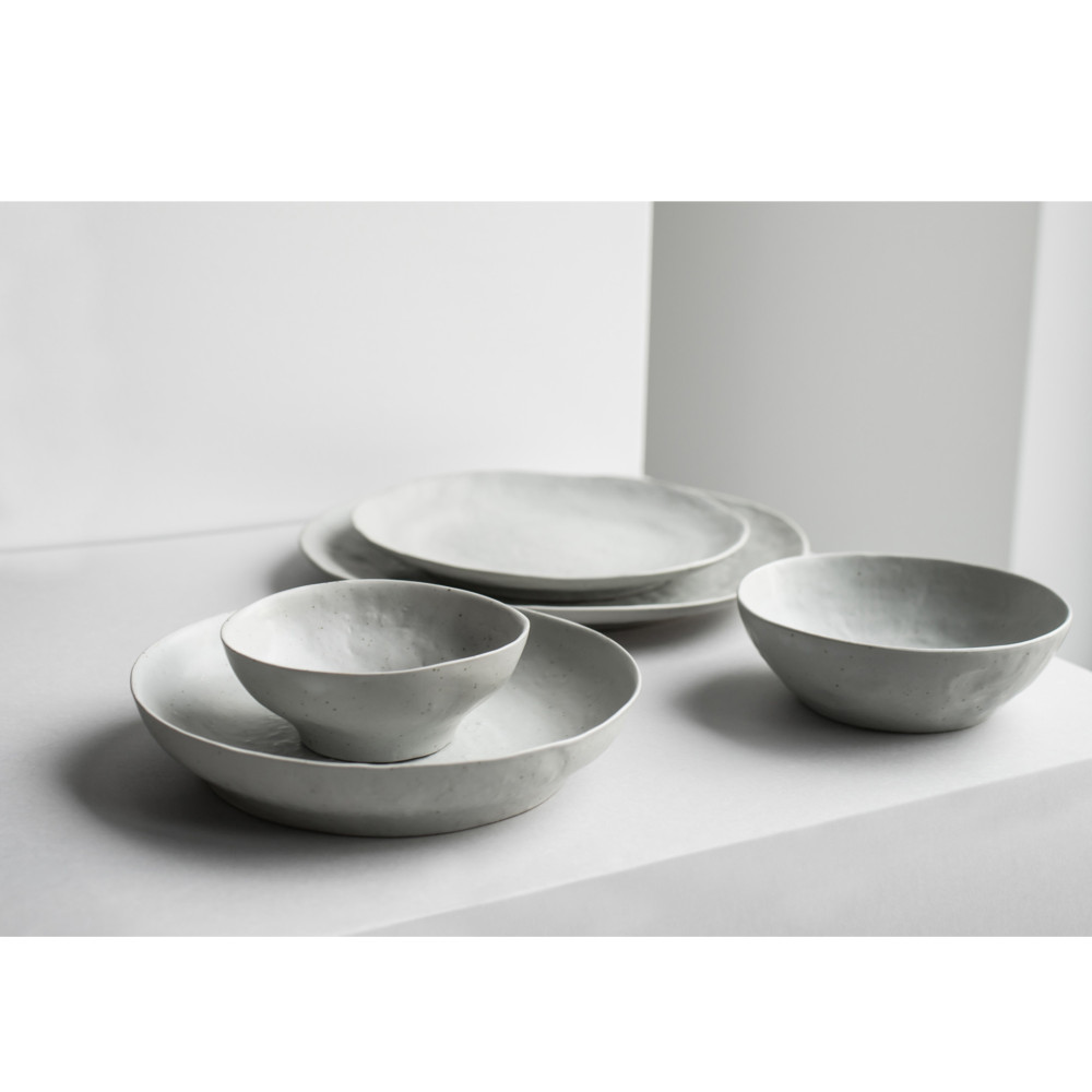 Kolekcja porcelany MENO marki Verlo to czyste piękno, prostota i elegancja. Jej nietuzinkowy wygląd to efekt połączenia kamienistej szarości i nieregularnej struktury porcelany. Każdy element tej kolekcji przypomina porcelanę wytwarzaną ręcznie przez rzemieślników, a nierówne wykończenie owalu naczyń doskonale to podkreśla. Subtelne, ciemniejsze drobinki zatopione w masie porcelany dodają jej wyjątkowego charakteru. Szkliwienie zarówno po wewnętrznej, jak i zewnętrznej stronie naczyń sprawia, że są one nie tylko estetyczne, ale także przyjemne w dotyku.
