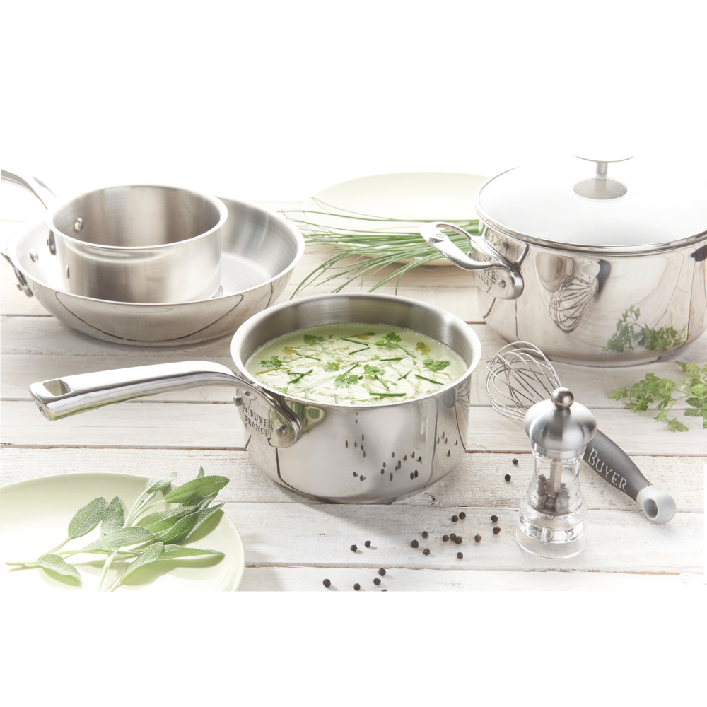 Rondel Milady marki deBuyer to niezastąpiony element każdej kuchni. Naczynia wykonane są najwyższej jakości stali nierdzewnej, a ich grube dno (7 mm) doskonale rozprowadza ciepło na jego całej powierzchni. Polerowanie stali na wysoki połysk dodatkowo nadaje kolekcji Milady wyjątkową elegancję.