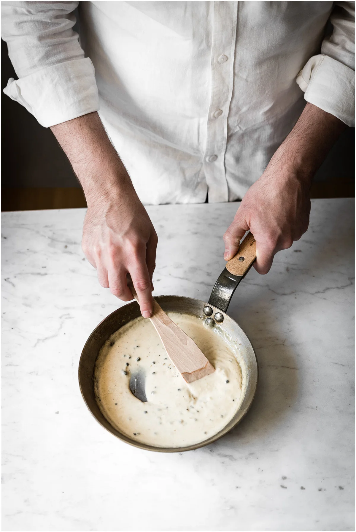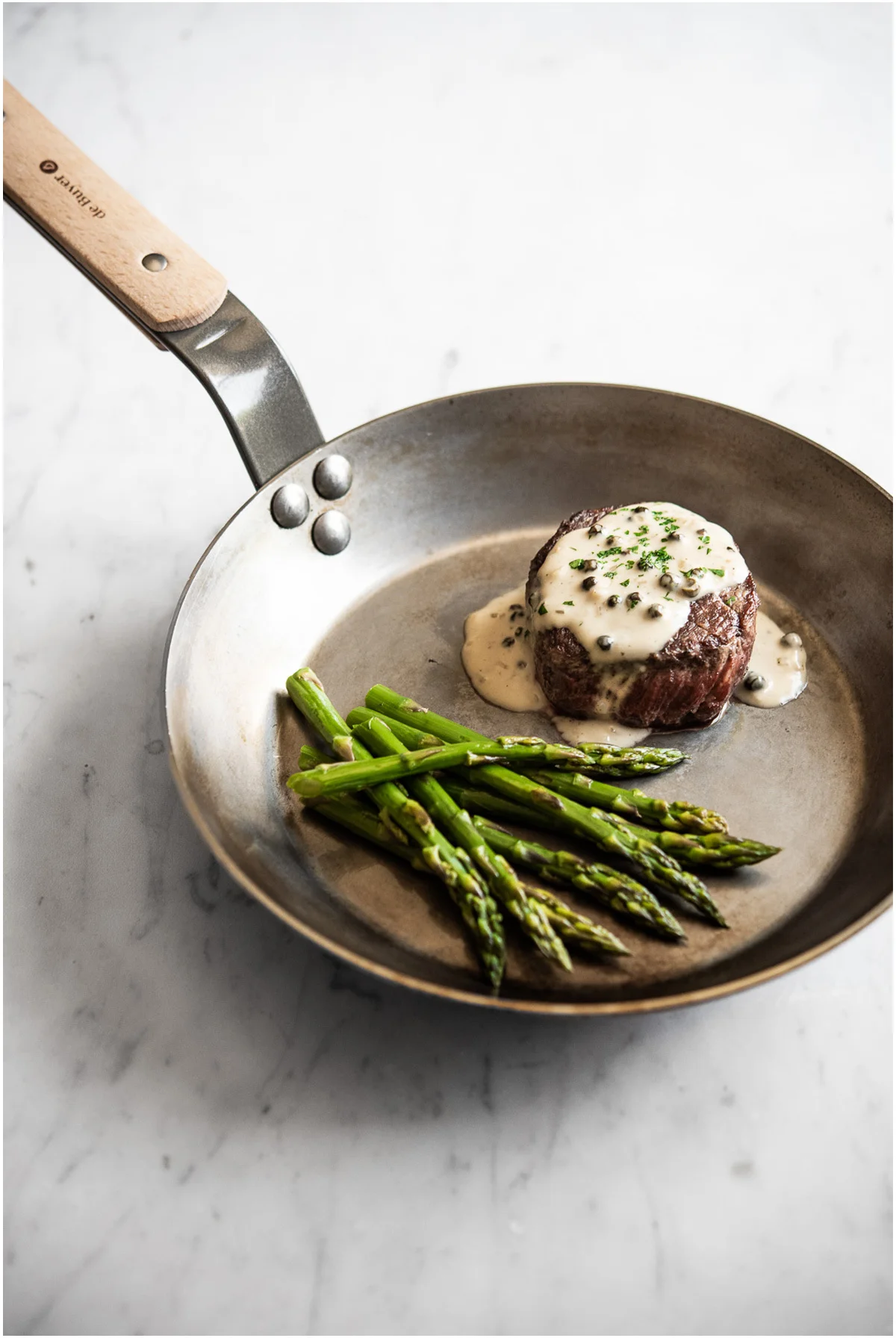 Wykonana ze stali węglowej, zabezpieczona naturalnym woskiem pszczelim, ta patelnia doskonale sprawdza się w smażeniu, grillowaniu i przyrumienianiu potraw. Jest idealna do podkreślania smaku dzięki tzw. reakcji Maillarda, podczas której dochodzi do karmelizacji naturalnych soków na powierzchni żywności, utrzymując jednocześnie jej miękkość w środku. Dzięki temu procesowi potrawy nabierają głębokiego aromatu i intensywnego smaku.