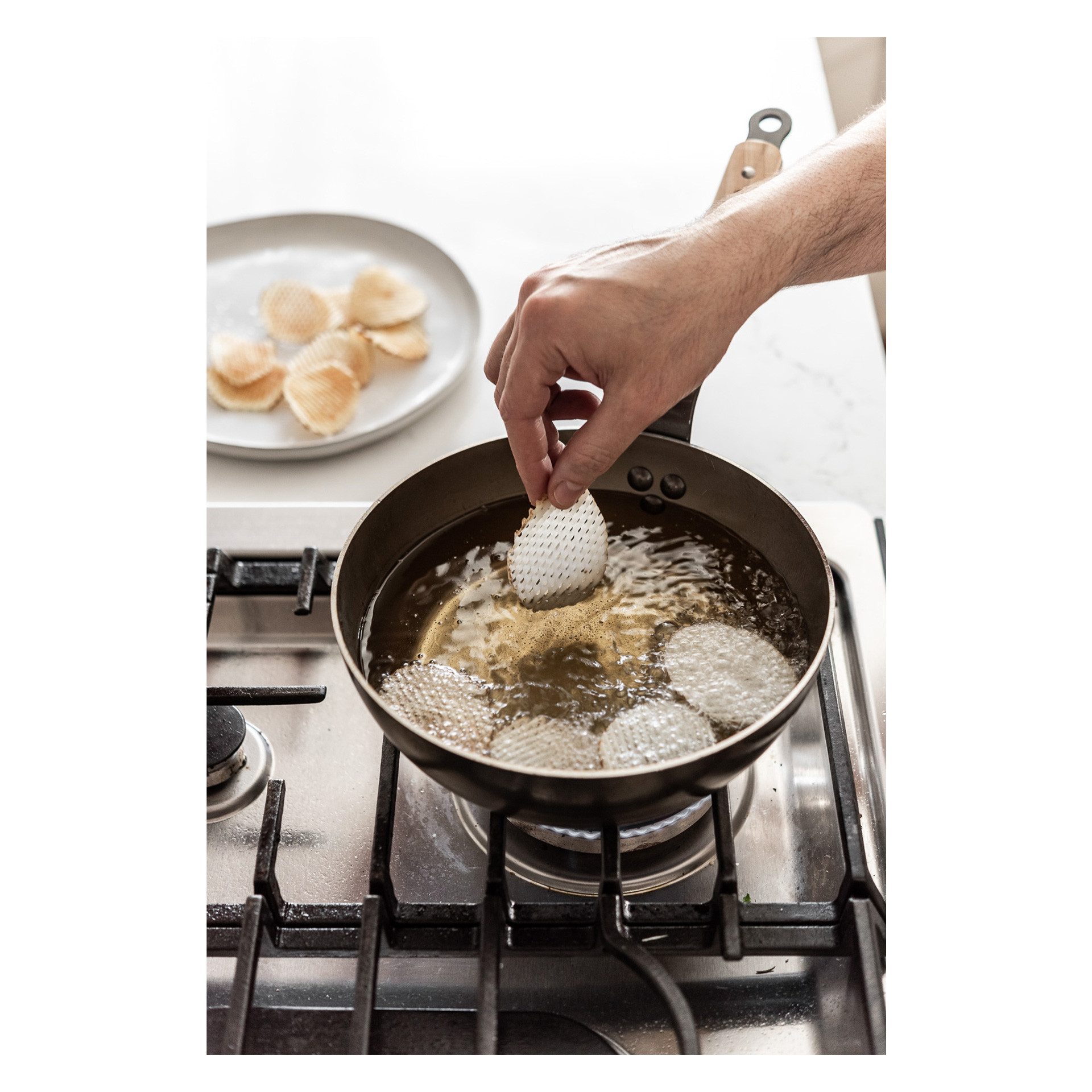 Wykonana ze stali węglowej, zabezpieczona naturalnym woskiem pszczelim, ta patelnia doskonale sprawdza się w smażeniu, grillowaniu i przyrumienianiu potraw. Jest idealna do podkreślania smaku dzięki tzw. reakcji Maillarda, podczas której dochodzi do karmelizacji naturalnych soków na powierzchni żywności, utrzymując jednocześnie jej miękkość w środku. Dzięki temu procesowi potrawy nabierają głębokiego aromatu i intensywnego smaku.