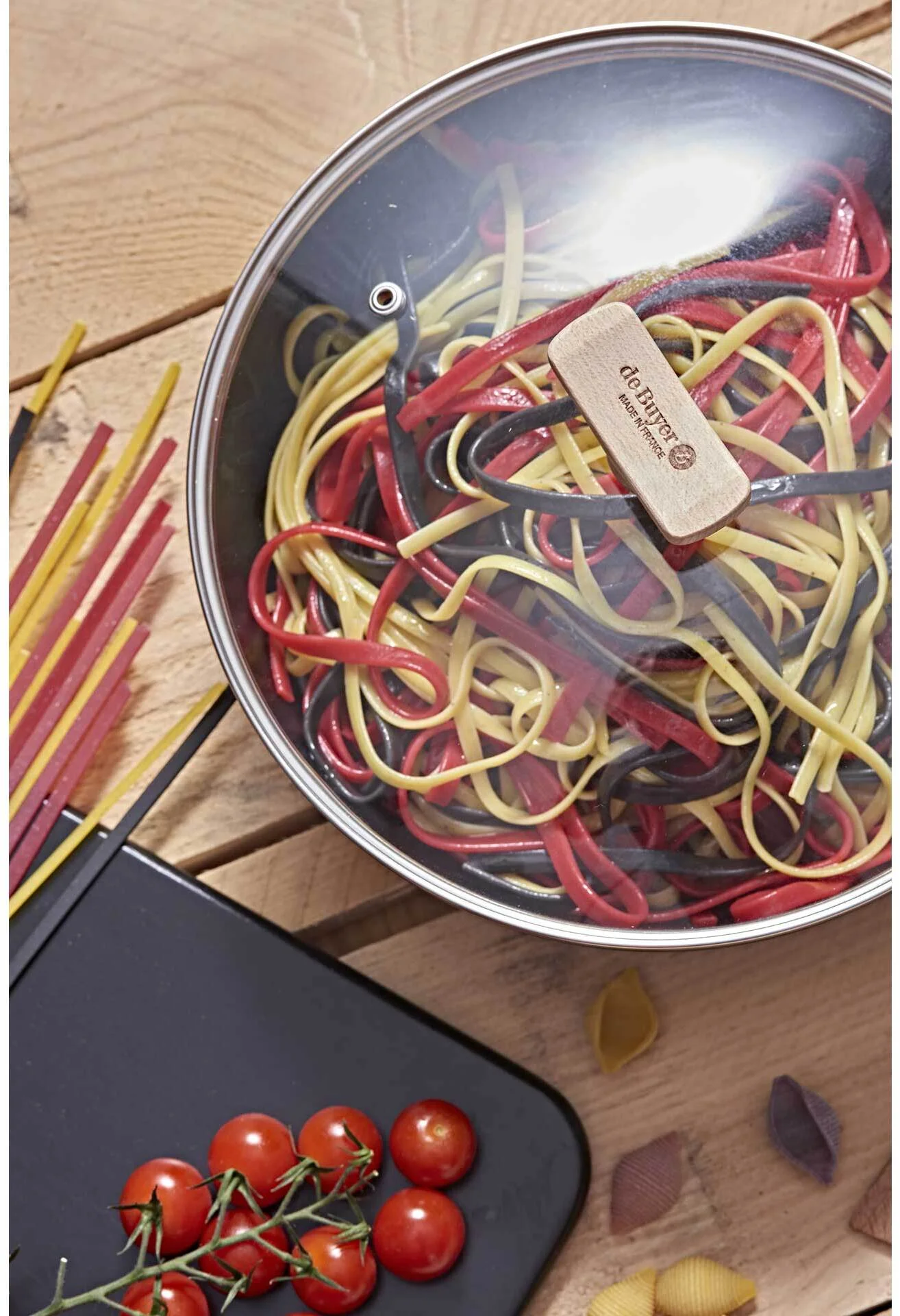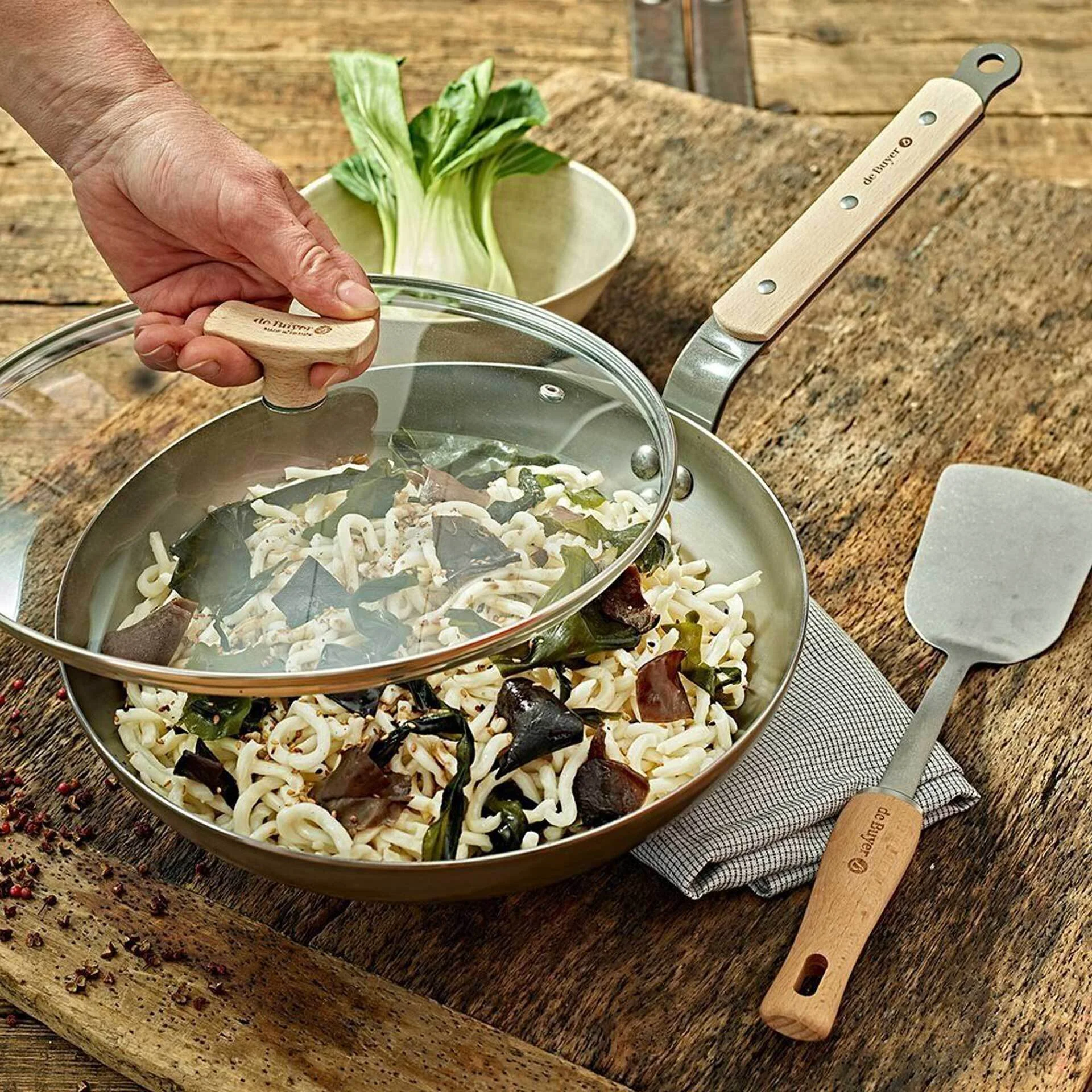 Pokrywka szklana marki deBuyer to doskonały dodatek do naczyń serii MINERAL B BOIS. Wykonana ze szkła, zapewnia dobrą widoczność podczas gotowania, a głęboka krawędź idealnie dopasowuje się do naczyń. Dzięki małemu otworowi para dyskretnie uwalnia się, nie powodując podnoszenia się pokrywy. Drewniany, ergonomiczny uchwyt ułatwia obsługę gotowania.