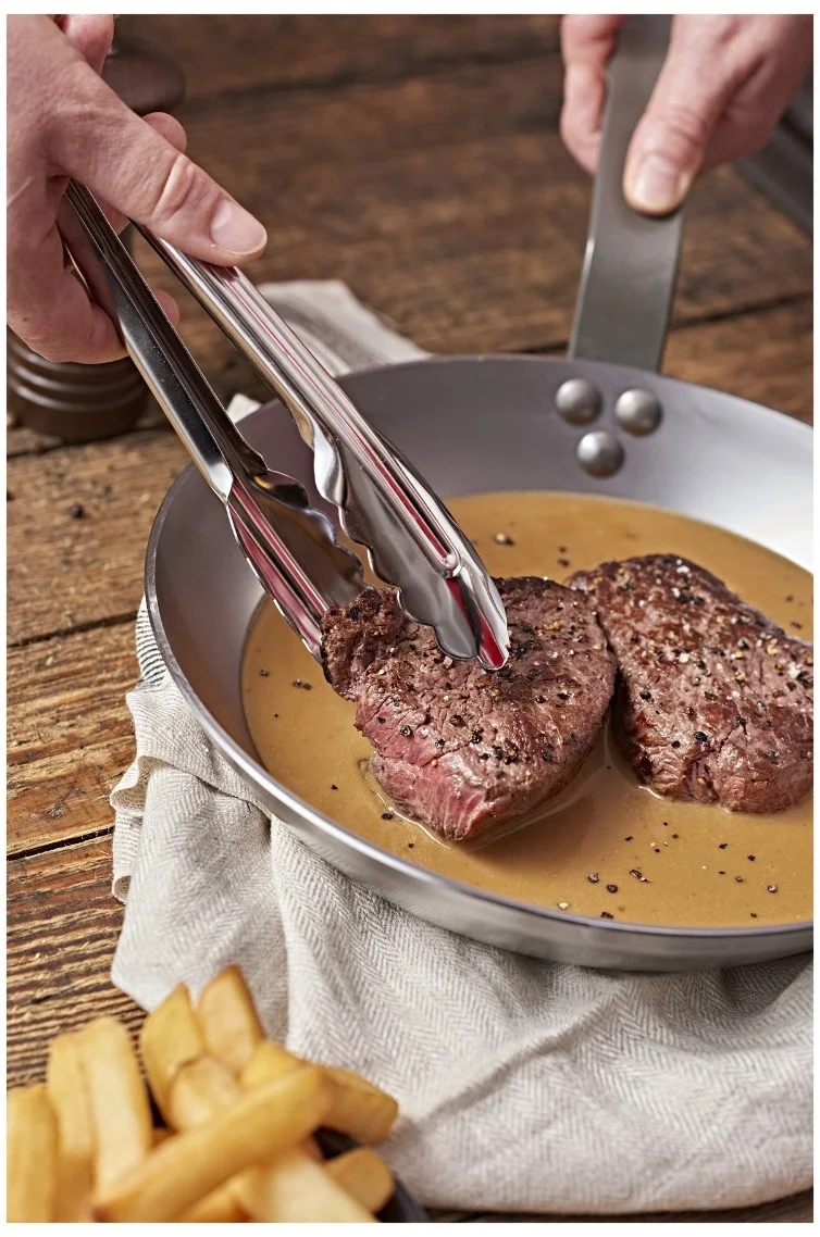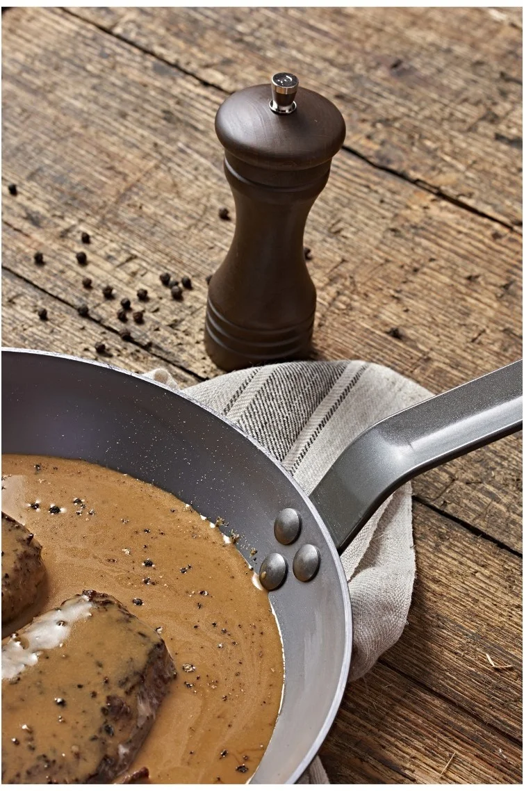 Wykonana ze stali węglowej, zabezpieczona naturalnym woskiem pszczelim, ta patelnia doskonale sprawdza się w smażeniu, grillowaniu i przyrumienianiu potraw. Jest idealna do podkreślania smaku dzięki tzw. reakcji Maillarda, podczas której dochodzi do karmelizacji naturalnych soków na powierzchni żywności, utrzymując jednocześnie jej miękkość w środku. Dzięki temu procesowi potrawy nabierają głębokiego aromatu i intensywnego smaku.