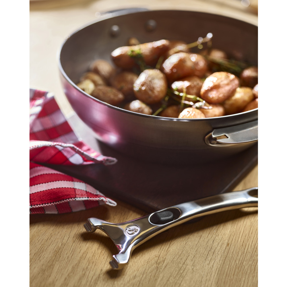 MINERAL B LOQY to kolekcja naczyń z nowatorskim i użytecznym systemem mocowań uchwytów. Uchwyty są solidnie nitowane i zapewniają wieloletnią trwałość i komfort użytkowania. Naczynie może być używane ze zdejmowaną rączką D-3660-00, lub z parą uchwytów D-3660-02 z drewna bukowego - do kupienia osobno. Naczynia tej serii można łatwo układać w stosy, co daje możliwość wygodnego przechowywania i oszczędności miejsca. Naczynia nadają się do wszystkich rodzajów płyt grzewczych, w tym indukcyjnych. Po zdemontowaniu rączki lub drewnianych uchwytów patelnie mogą być stosowane również do zapiekania lub wykończania dań w piekarniku w temperaturze do 250°C.