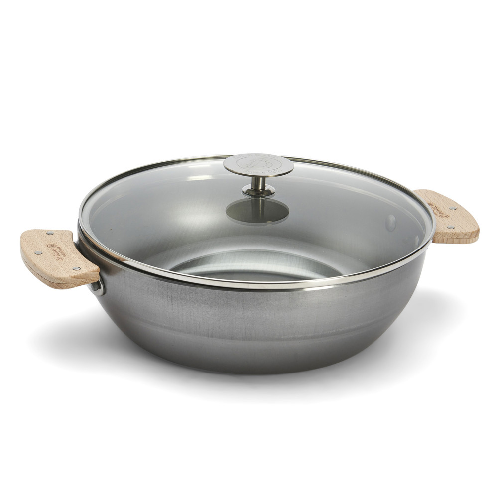 MINERAL B LOQY to patelnia wykonana z najwyższej jakości stali węglowej, pokryta woskiem pszczelim - dla tymczasowej ochrony przed utlenianiem się stali.