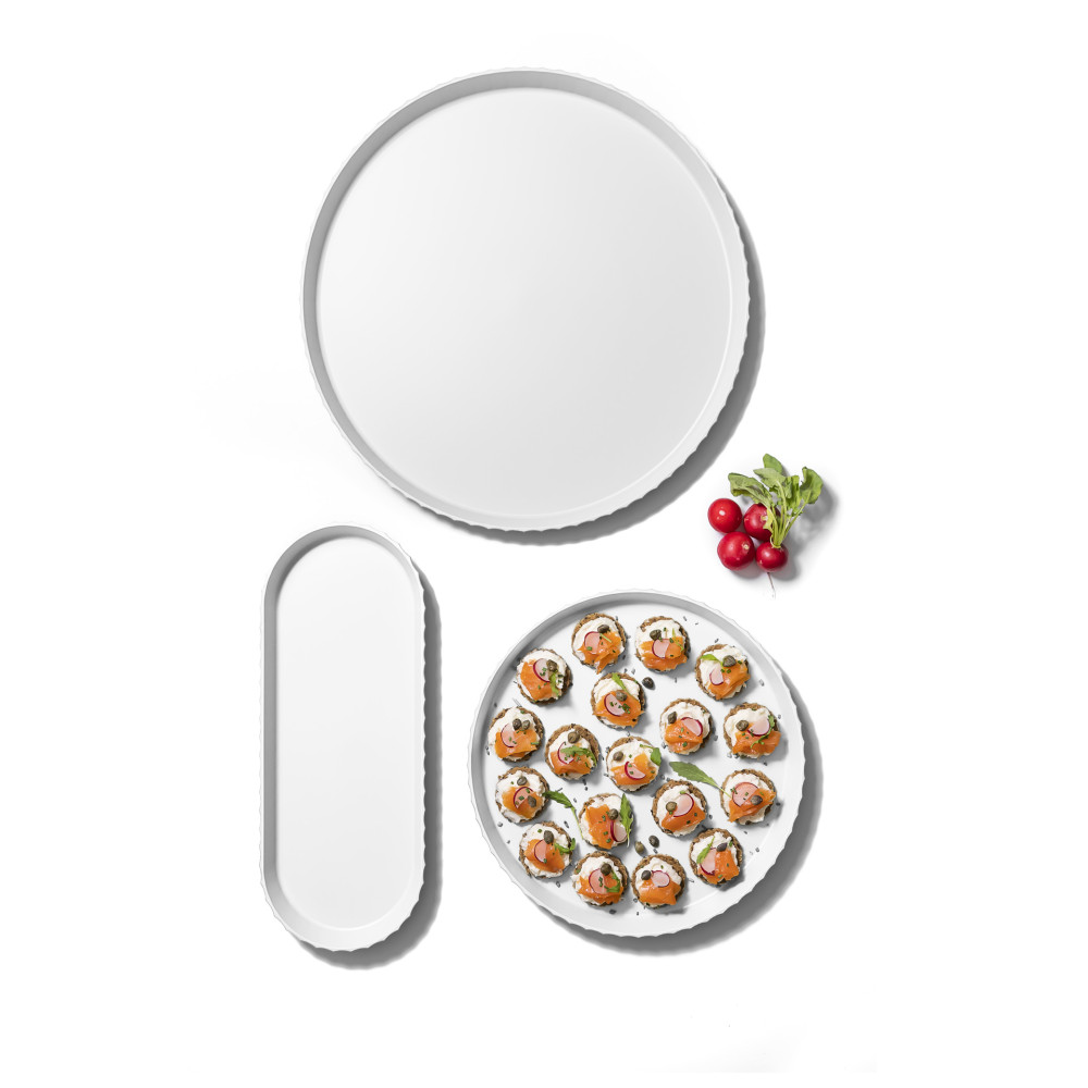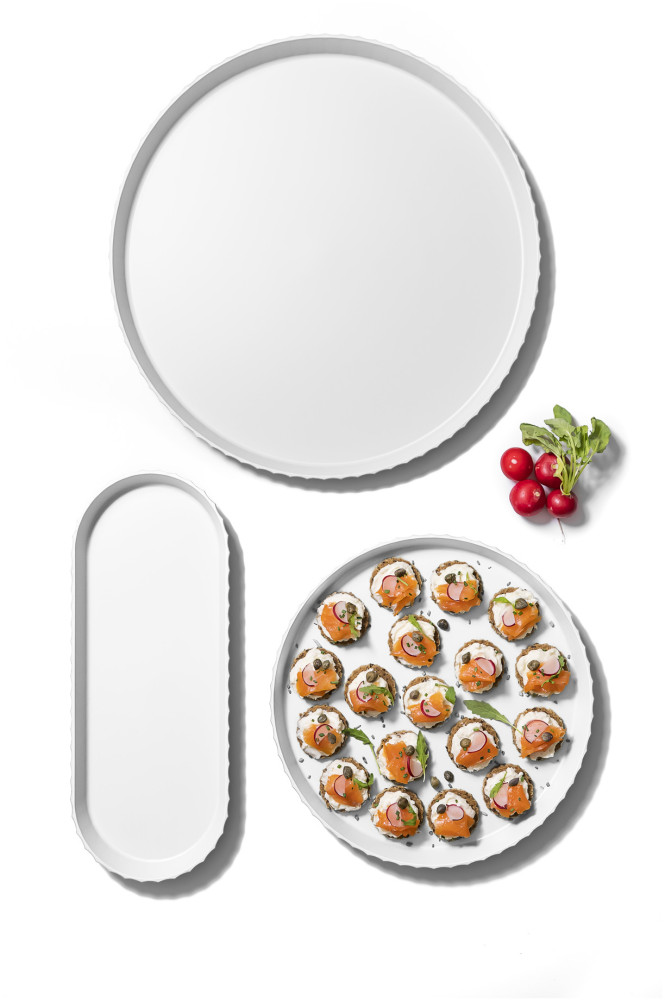 Przyrządzaj, przechowuj i podawaj ulubione potrawy na designerskich, wielofunkcyjnych tacach. Pasują do różnych stylów aranżacji stołu. Doskonale sprawdzą się zarówno podczas przyjęć organizowanych wewnątrz pomieszczeń jak i na świeżym powietrzu. Są lekkie i wygodne w serwowaniu. Tace doskonale komponują się z pozostałymi elementami kolekcji PAESTUM i mogą być uzupełnieniem kolekcji mis NETTUNO i HERA. Stwórz własną kolekcję, łącząc różne kolory i rozmiary naczyń. Staną się one z pewnością niezastąpionym towarzyszem każdego przyjęcia czy posiłku.