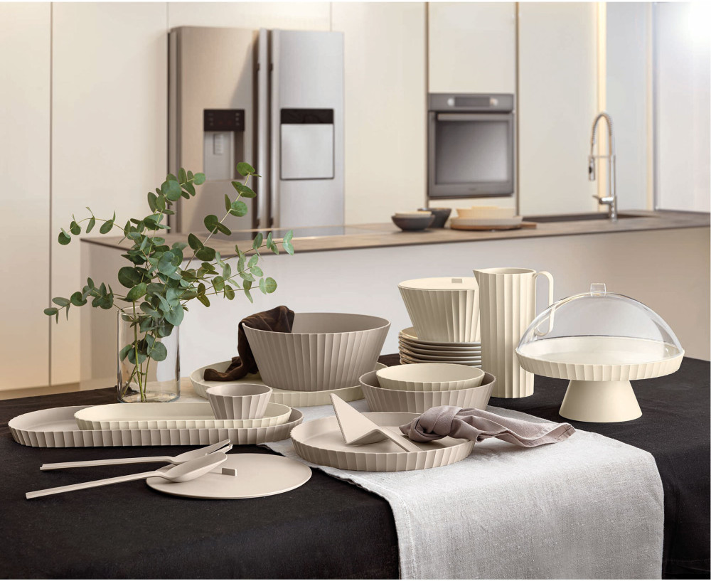 Zachowawczość pięknych, pastelowych barw, prostota formy, dbałość o szczegóły geometryczne i ergonomię to wszystko tworzy harmonijną i doskonałą kompozycję dekoracji stołu. Blim Plus oferuje nową ideę kuchni zaprojektowaną z pełnym poszanowaniem środowiska dzięki jakościowemu i świadomemu wykorzystaniu tworzywa sztucznego.
