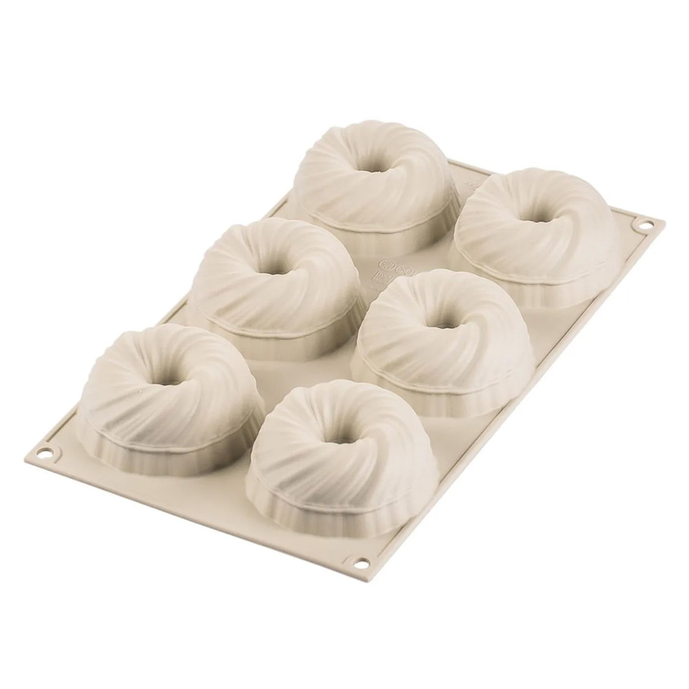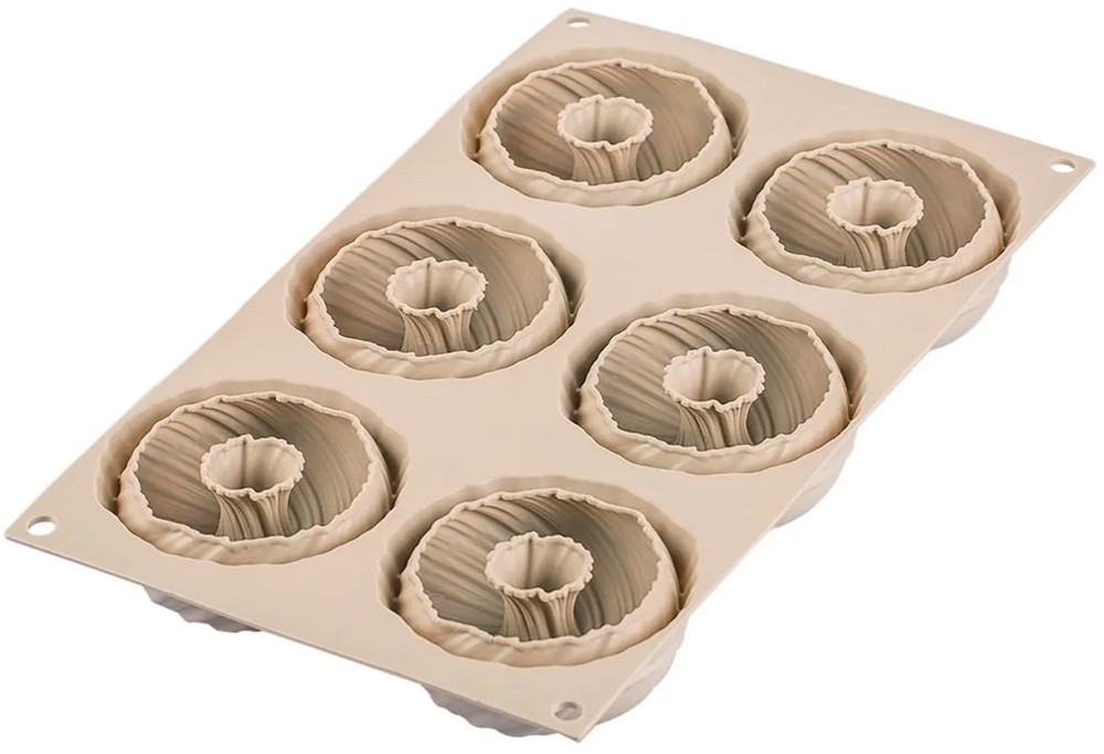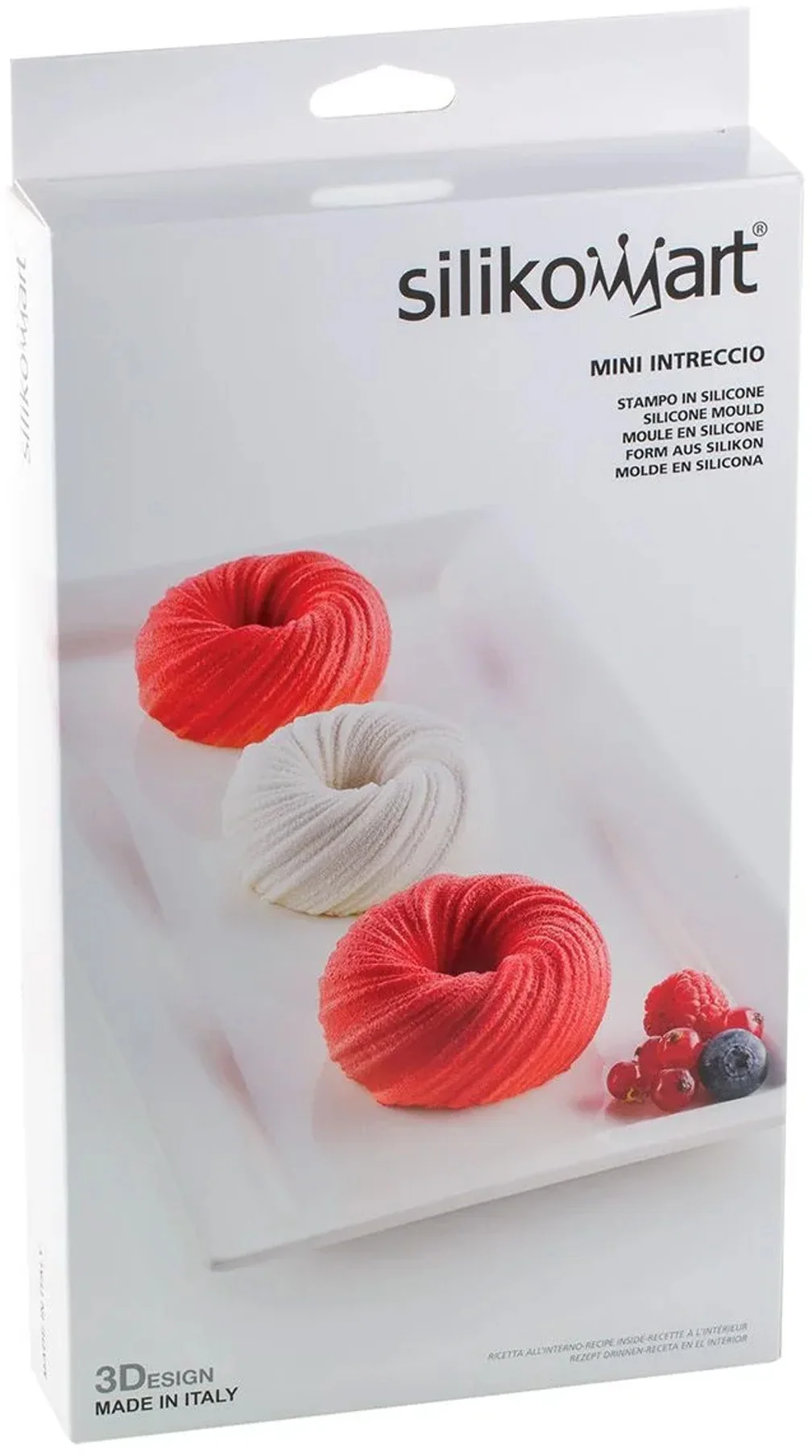 Forma Mini Intreccio z linii 3Design firmy Silikomart gwarantuje doskonałe rezultaty nie tylko w wersji semifreddo i mousse, ale także w wersji do wypiekania. Innowacyjna technologia 3D marki Silikomart sprawia, że wyjmowanie deserów z formy jest szybkie i łatwe, co pozwala osiągnąć perfekcyjne efekty. Może być wykorzystywana do przygotowywania różnych rodzajów deserów, w tym ciast. Forma umożliwia przygotowanie deseru o kształcie finezyjnych gniazdek, co daje zaskakujący i oryginalny efekt w tworzeniu kreatywnych smakołyków. Forma silikonowa - Mini Intreccio posiada 6 zagłębień, każde o pojemności 105 ml.