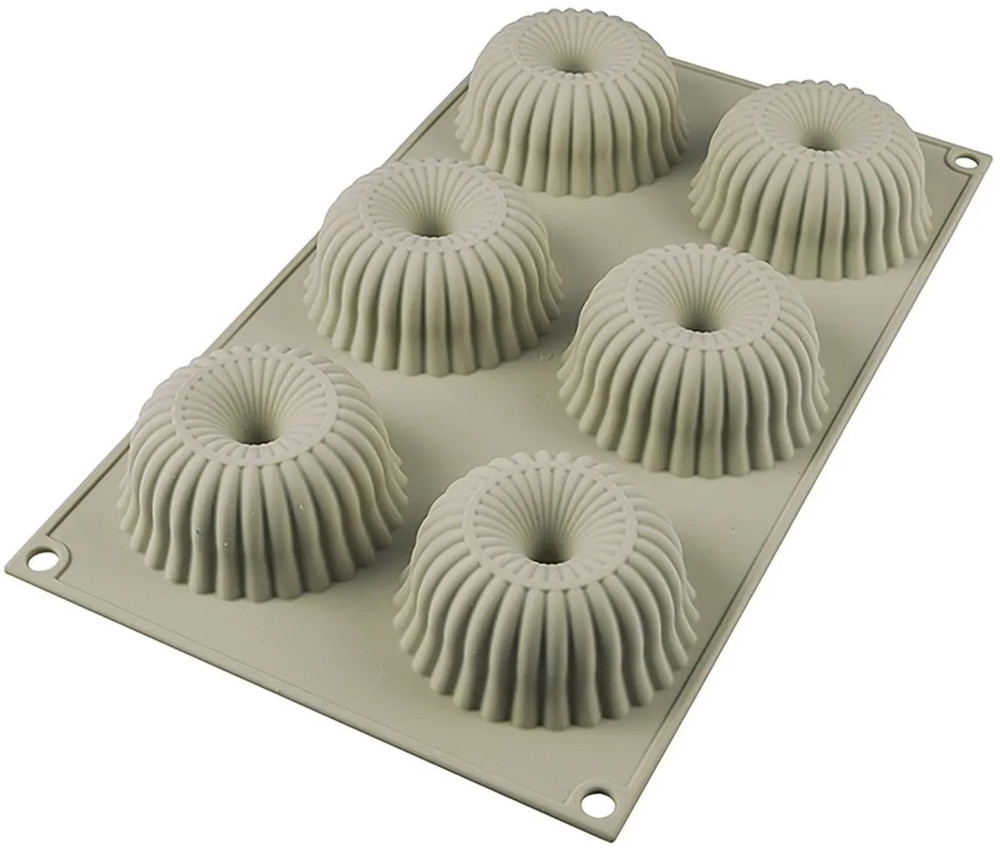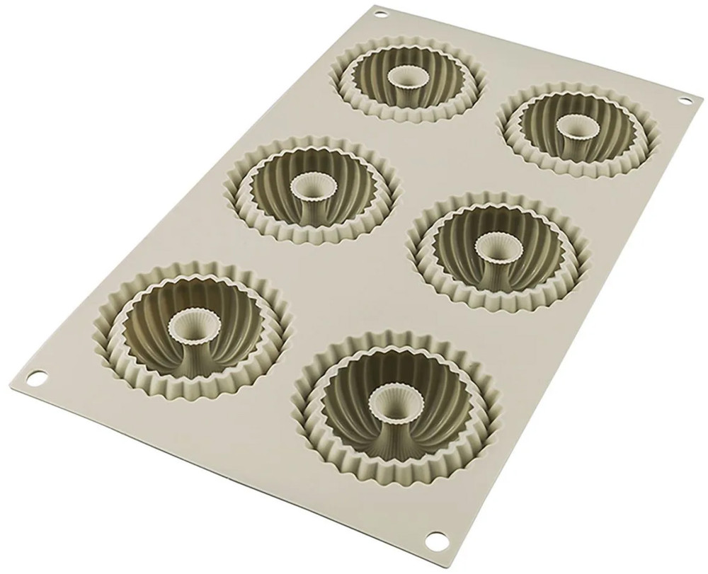 Forma Mini Raggio z linii 3Design firmy Silikomart gwarantuje doskonałe rezultaty nie tylko w wersji semifreddo i mousse, ale także w wersji do wypiekania. Innowacyjna technologia 3D marki Silikomart sprawia, że wyjmowanie deserów z formy jest szybkie i łatwe, co pozwala osiągnąć perfekcyjne efekty. Może być wykorzystywana do przygotowywania różnych rodzajów deserów, w tym ciast. Forma umożliwia przygotowanie deseru o kształcie finezyjnych żłobionych dysków, co daje zaskakujący i oryginalny efekt w tworzeniu kreatywnych smakołyków. Forma silikonowa - Mini Raggio posiada 6 zagłębień, każde o pojemności 85 ml.