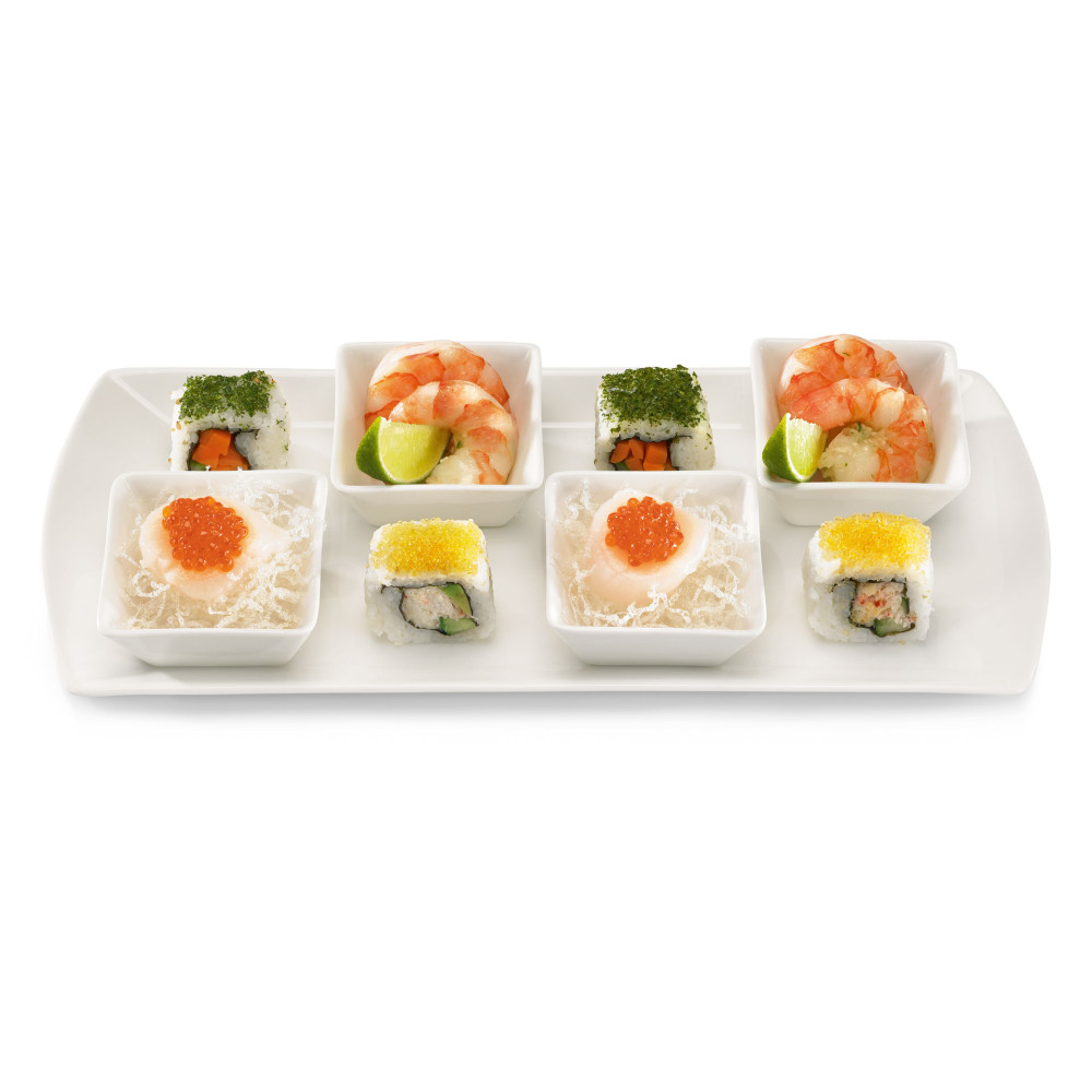 Linia RAK MINIMAX eklektycznie łączy różne kształty naczyń, oferując wiele pomysłów zastosowania talerzy, pólmisków lub innych naczyń jako samodzielny stołowy dodatek lub w harmonijnej kombinacji z innymi liniami porcelany RAK. Różnorodność rozmiarów zapewnia innowacyjne rozwiązania do serwowania najbardziej niezwykłych kulinarnych kreacji w najlepszych restauracjach. Najmniejsze naczynka dedykowane mini-przekąskom, eliminują z użycia jednorazowe naczynia z tworzyw sztucznych.