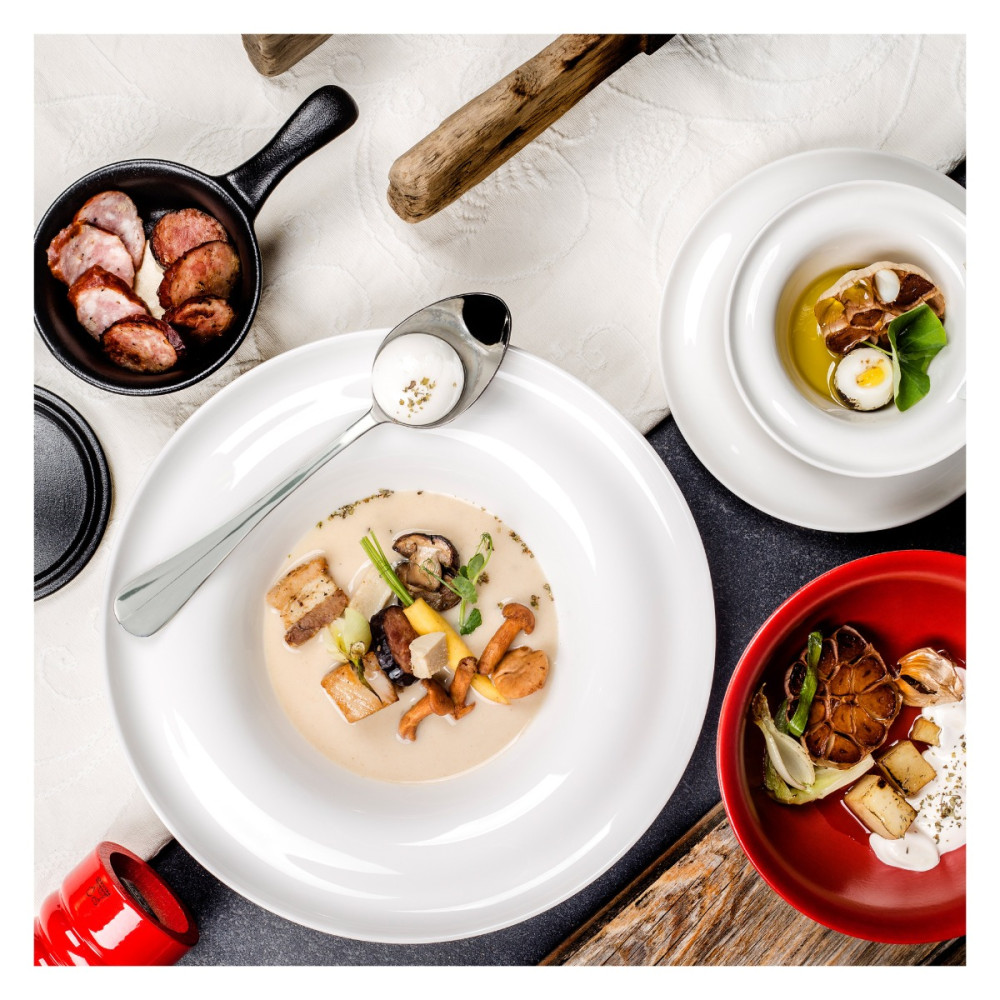 Głównym akcentem kolekcji RAK LYRA jest kontrast pogłębionego centrum talerza i opływowowego szerokiego rantu. Potrawa serwowana jest w pięknej oprawie. Kolekcja łączy również w sobie eleganckie wysokie i niższe, wąskie i szersze korpusy dzbanków i akcesoriów, tworząc interesujące napięcie między formami.