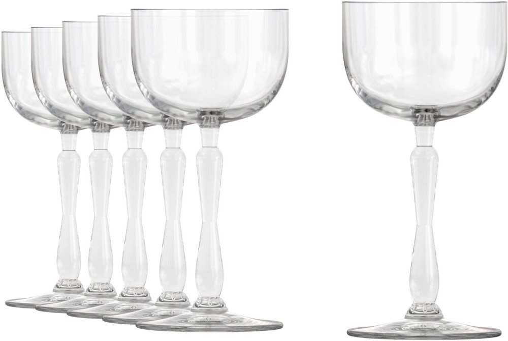 NEW ERA to elegancka seria szkła o wyglądzie nawiązującym do stylu vintage. Jej unikalne detale w postaci efektownych dekorów doskonale podkreślają ten styl. Kolekcja obejmuje trzy szklanki, które można ustawiać jedną na drugiej, oraz pięć kieliszków do koktajli.