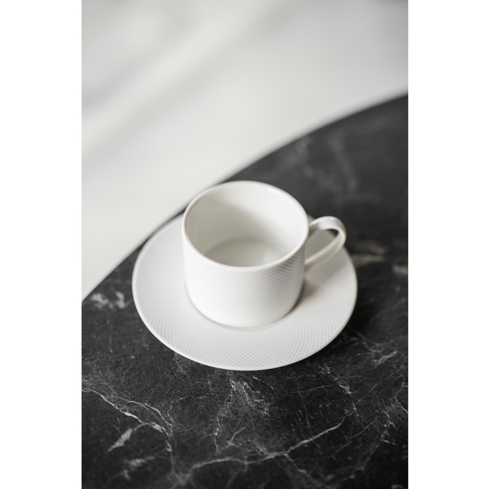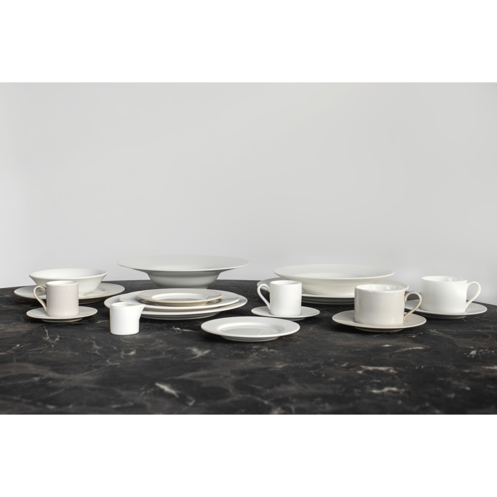 Zastawa stołowa z kolekcji NORWICH marki Verlo to idealne połączenie klasyki i nowoczesności. Wektorowy, geometryczny wzór dekoracyjny na obrzeżach talerzy i zewnętrznej części filiżanek nadaje tej kolekcji wyjątkowego stylu. Subtelny, a zarazem charakterystyczny dekor dodaje elegancji klasycznym kształtom i prostym formom filiżanek, tworząc wyrafinowany akcent w aranżacji stołu podczas serwowania dań i deserów.