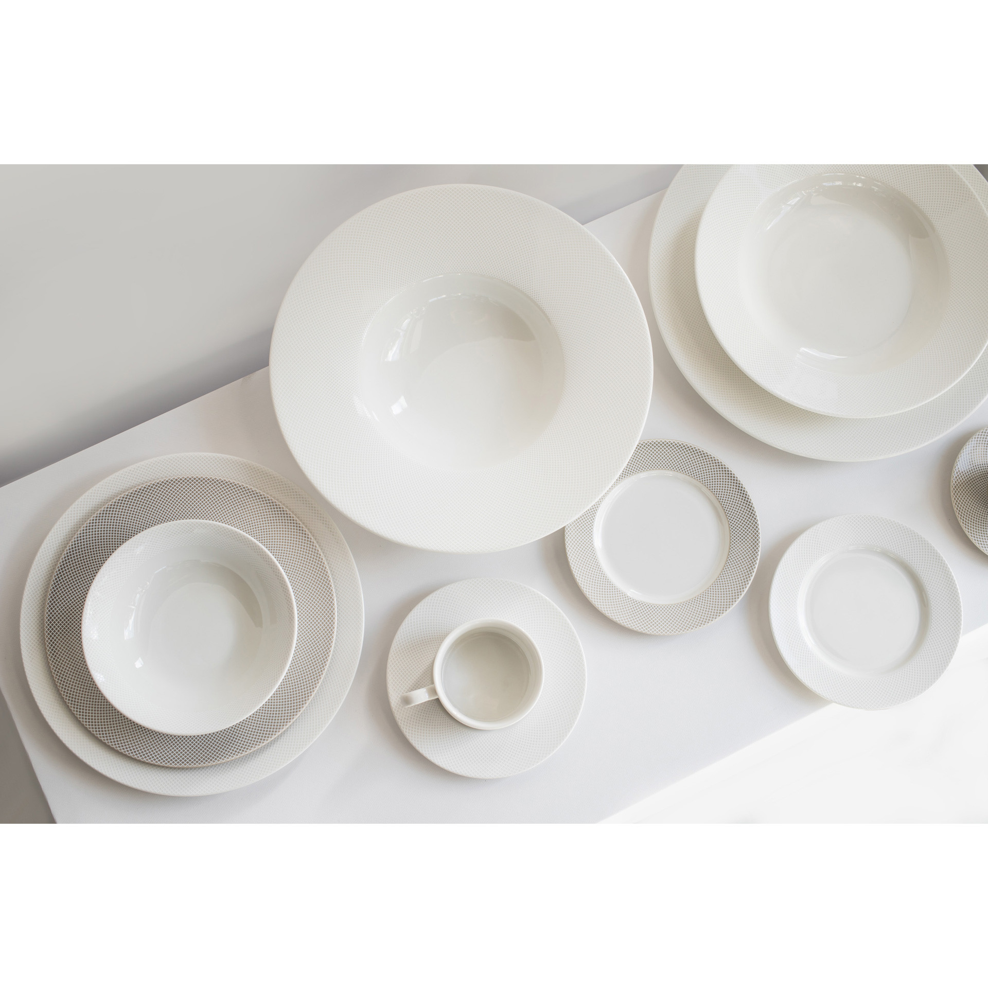Asortyment kolekcji NORWICH obejmuje płaskie talerze, talerze głębokie, miseczki, filiżanki, spodki do filiżanek oraz mlecznik. Wykonane z najwyższej jakości porcelany w dwóch subtelnych kolorach, naczynia tworzą harmonijne połączenie klasyki i nowoczesności.