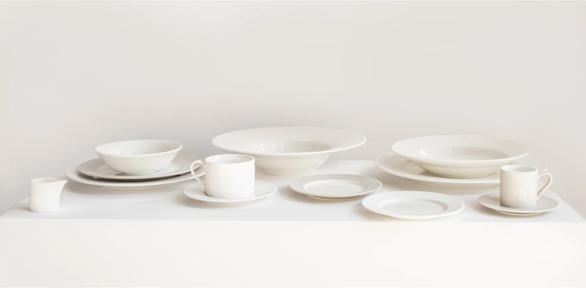 Asortyment kolekcji NORWICH obejmuje płaskie talerze, talerze głębokie, miseczki, filiżanki, spodki do filiżanek oraz mlecznik. Wykonane z najwyższej jakości porcelany w dwóch subtelnych kolorach, naczynia tworzą harmonijne połączenie klasyki i nowoczesności.