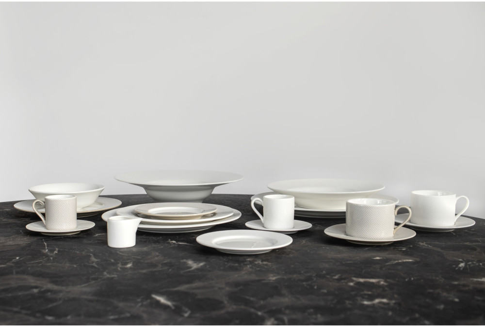 Asortyment kolekcji NORWICH obejmuje płaskie talerze, talerze głębokie, miseczki, filiżanki, spodki do filiżanek oraz mlecznik. Wykonane z najwyższej jakości porcelany w dwóch subtelnych kolorach, naczynia tworzą harmonijne połączenie klasyki i nowoczesności.
