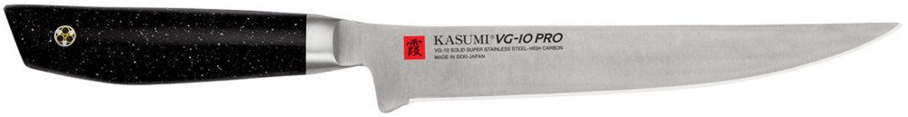 Ostrze tnące KASUMI VG-10 PRO jest wykonane z japońskiej monolitycznej wysokowęglowej nierdzewnej stali ze stopu o znacznej zawartości kobaltu. W procesie utwardzania osiągnięto idealną dla profesjonalnych zastosowań kuchennych twardość na poziomie 59-60 stopni w skali Rockwell'a. Technologia produkcji gwarantuje poziom ostrości przewyższającą większość dostępnych na rynku noży. Stal VG-10 PRO zapewnia elastyczność ostrza i odporność na pękanie.