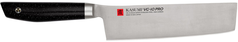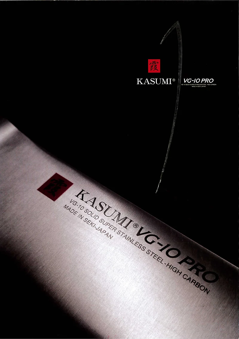 Ostrze tnące KASUMI VG-10 PRO jest wykonane z japońskiej monolitycznej wysokowęglowej nierdzewnej stali ze stopu o znacznej zawartości kobaltu. W procesie utwardzania osiągnięto idealną dla profesjonalnych zastosowań kuchennych twardość na poziomie 59-60 stopni w skali Rockwell'a. Technologia produkcji gwarantuje poziom ostrości przewyższającą większość dostępnych na rynku noży. Stal VG-10 PRO zapewnia elastyczność ostrza i odporność na pękanie.