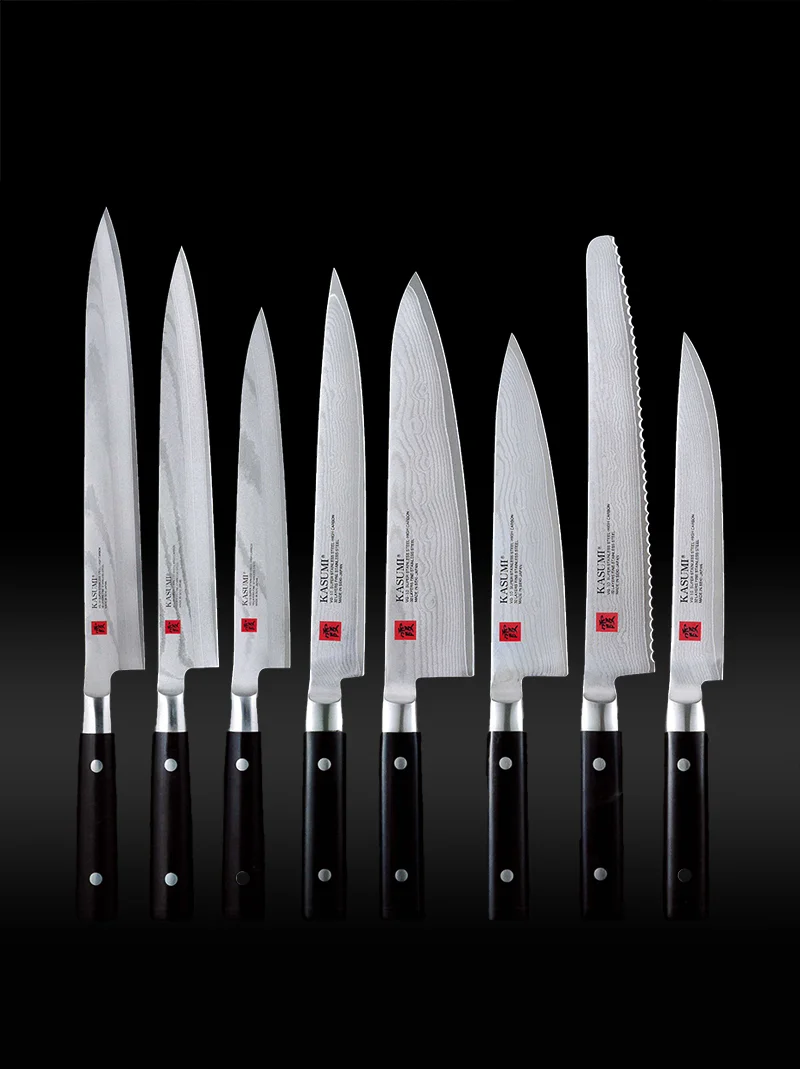 Każdy nóż ze stali damasceńskiej firmy KASUMI jest niepowtarzalnym arcydziełem tradycyjnej sztuki rękodzielniczej.