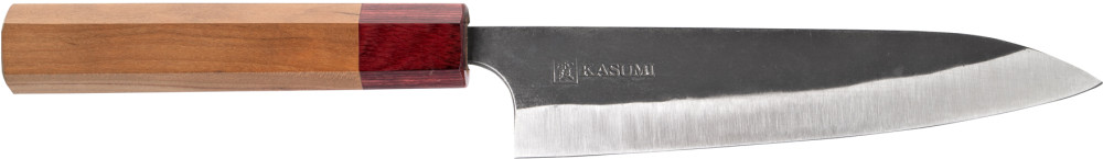 Rzemieślniczo kute noże Kasumi Black Hammer, produkowane w limitowanych ilościach. Wykonane są ze stali Aogami /Blue Paper Steel - tradycyjnej japońskiej stali węglowej, wzbogaconej chromem i wolframem (62 HRC). Noże Black Forged wymagają konserwacji i kontrolowanego użytkowania. Nie posiadają właściwości nierdzewnych. Rękojeść wykonana jest z drewna wiśni.