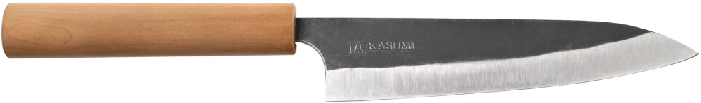 Rzemieślniczo kute noże Kasumi Black Hammer, produkowane w limitowanych ilościach. Wykonane są ze stali Aogami /Blue Paper Steel - tradycyjnej japońskiej stali węglowej, wzbogaconej chromem i wolframem (62 HRC). Noże Black Forged wymagają konserwacji i kontrolowanego użytkowania. Nie posiadają właściwości nierdzewnych. Rękojeść wykonana jest z drewna wiśni.