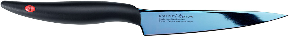 Noże TITANIUM to seria najwyższej jakości noży powlekanych tytanem japońskiej firmy KASUMI.Ostrze wykonane ze stali molibdenowo-wanadowej powlekane warstwą tytanu gwarantuje najwyższą ostrość. Powłoka tytanowa dostępna jest w dwóch kolorach. Tytan jest metalem nietoksycznym a dzięki właściwości nie generowania jonów żelaza na powierzchni, krojona żywność pozbawiona jest metalicznego posmaku. Tytan jest odporny na korozję, i na ścieranie dzięki czemu noże Titanium są niezastąpionymi narzędziami w profesjonalnej kuchni. Ponadto wybór jednej z trzech wersji kolorystycznych - srebrnej, złotej bądź niebieskiej - czyni je dodatkowo stylowym elementem wystroju wnętrza.