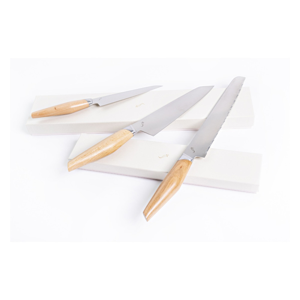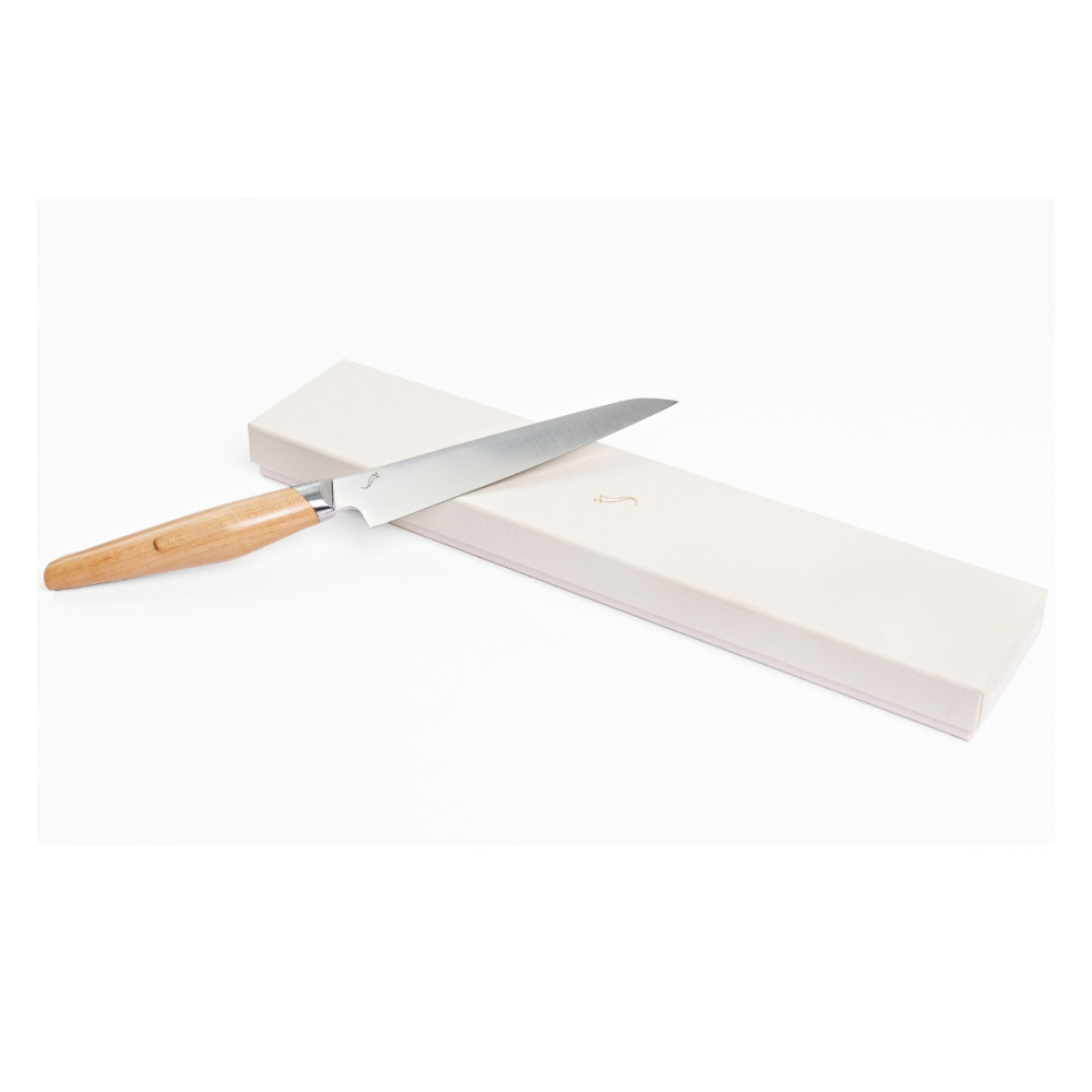 Nóż zwany kuchennym bądź uniwersalnym ma dłuższe i węższe ostrze od ostrza noża szefa kuchni. Świetnie się sprawdza przy krojeniu mięsa, wędlin jak również owoców i warzyw.