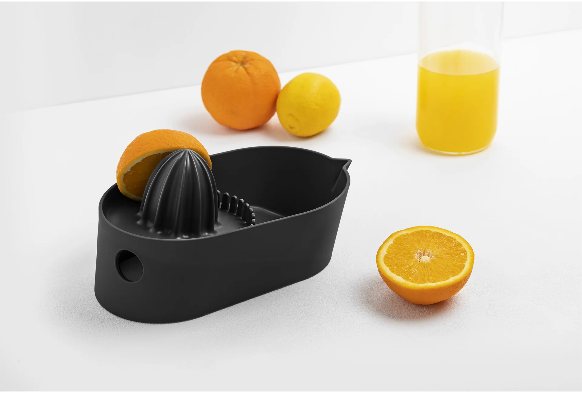 Manualna wyciskarka do cytrusów OBLÓ szybko, wygodnie wyciska, filtruje i zbiera sok owocowy. Nadaje się do każdego rodzaju owoców cytrusowych. Stabilna, antypoślizgowa podstawa gwarantuje komfort przygotowywania świeżych soków. Dwa boczne otwory na palce zapewniają wygodny chwyt wyciskarki i przelewanie soku.