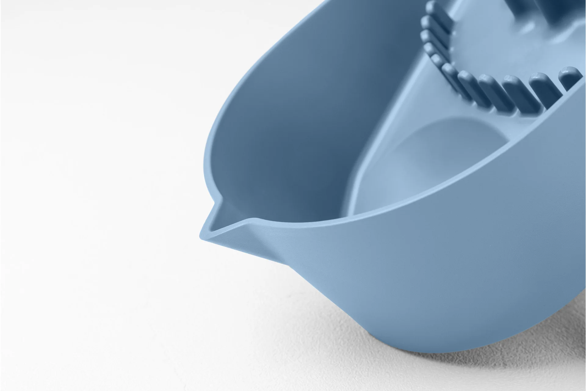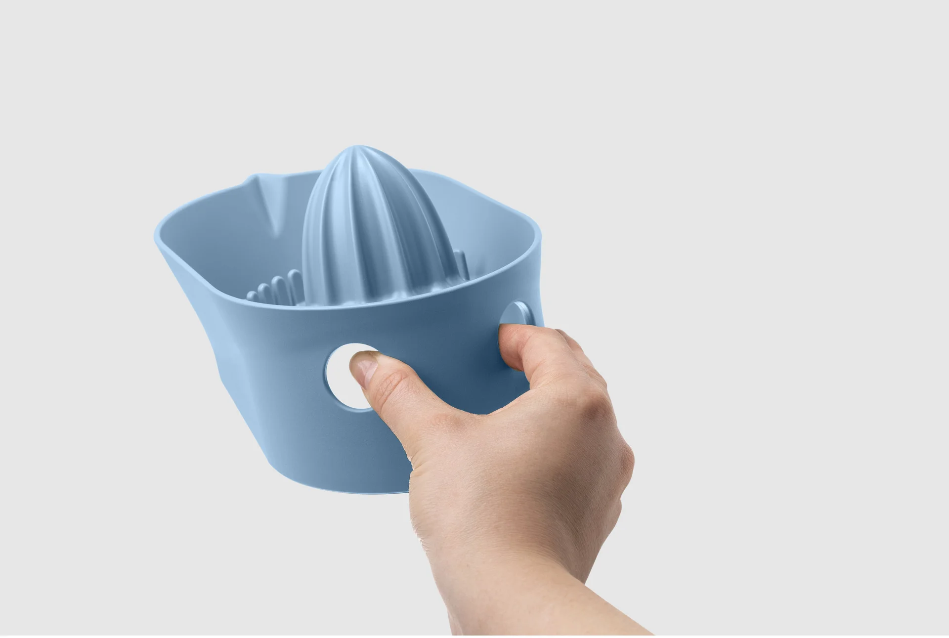 Manualna wyciskarka do cytrusów OBLÓ szybko, wygodnie wyciska, filtruje i zbiera sok owocowy. Nadaje się do każdego rodzaju owoców cytrusowych. Stabilna, antypoślizgowa podstawa gwarantuje komfort przygotowywania świeżych soków. Dwa boczne otwory na palce zapewniają wygodny chwyt wyciskarki i przelewanie soku.