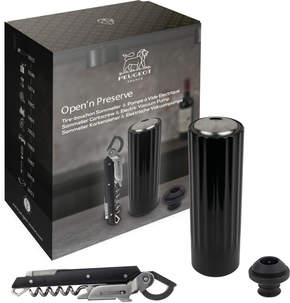 OPEN'n PRESERVE Elektryczna pompka próżniowa i korkociąg / PEUGEOT