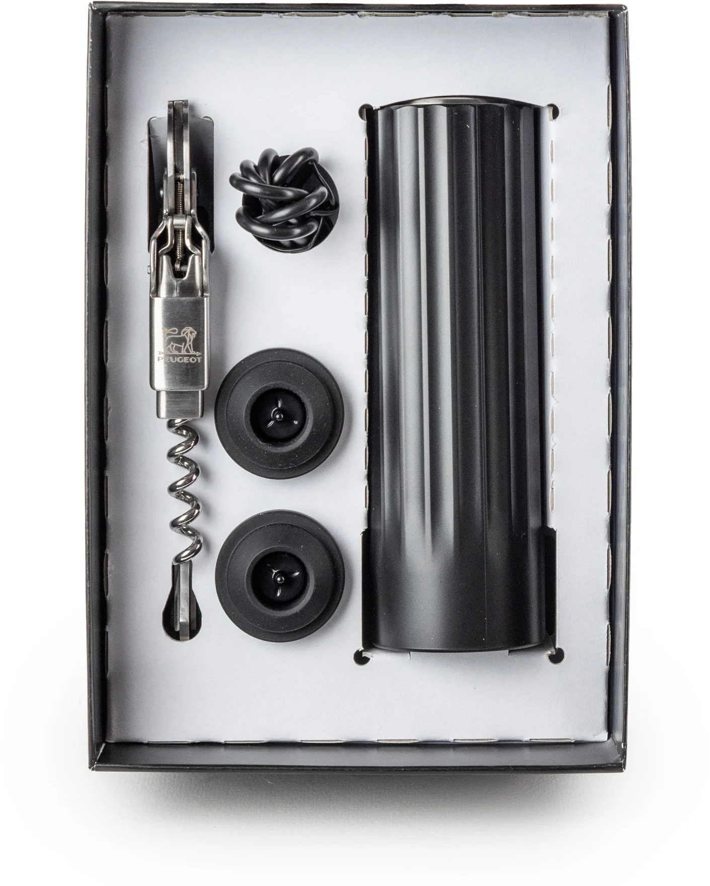Korkociąg barmański Peugeot Clavelin został stworzony z myślą o większej praktyczności i wydajności. Ekskluzywny, opatentowany mechanizm i wygodna rękojeści umożliwia otwieranie wszystkich rodzajów korków jednym, ciągłym ruchem. Korkociąg jest wyposażony w zintegrowany przecinak do folii i otwieracz do butelek. Jego futurystyczny design sprawia, że jest nie tylko praktyczny, ale i designerski. Funkcjonalna, składana forma, jest optymalnych wymiarów i z łatwością mieści się w kieszeni. Po rozłożeniu można używać go jako: korkociągu, otwieracza do kapsli lub nożyka do cięcia folii.