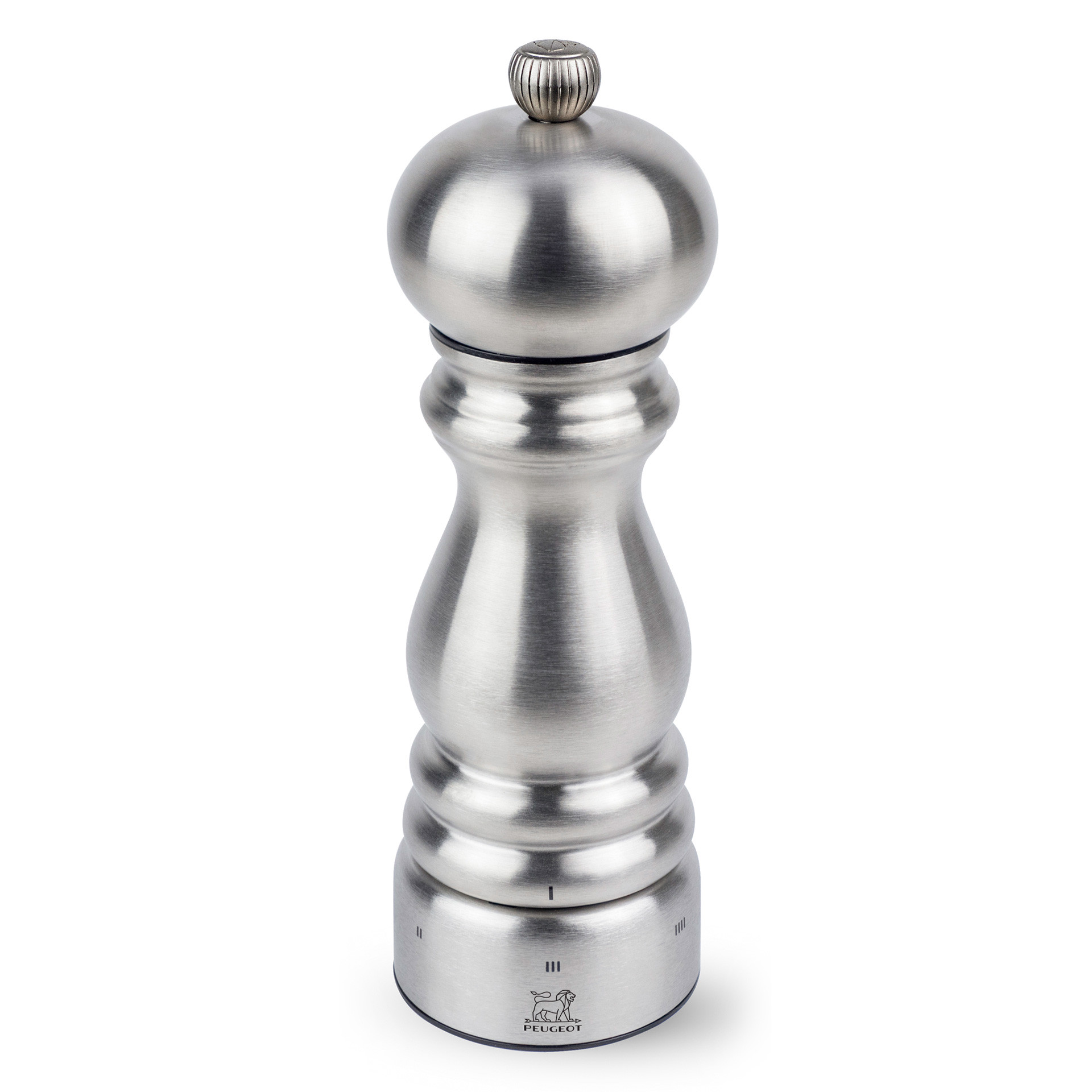 Ustawienie grubości mielenia w młynkach PEUGEOT może odbywać się bądź poprzez tradycyjną płynną regulację dzięki dokręceniu pokrętła w górnej części korpusu, bądź w przypadku młynków z mechanizmem uSelect, przez wybór jednego z 6 stopni grubości mielenia (1 dla najdrobniejszego, 6 dla najgrubszego).