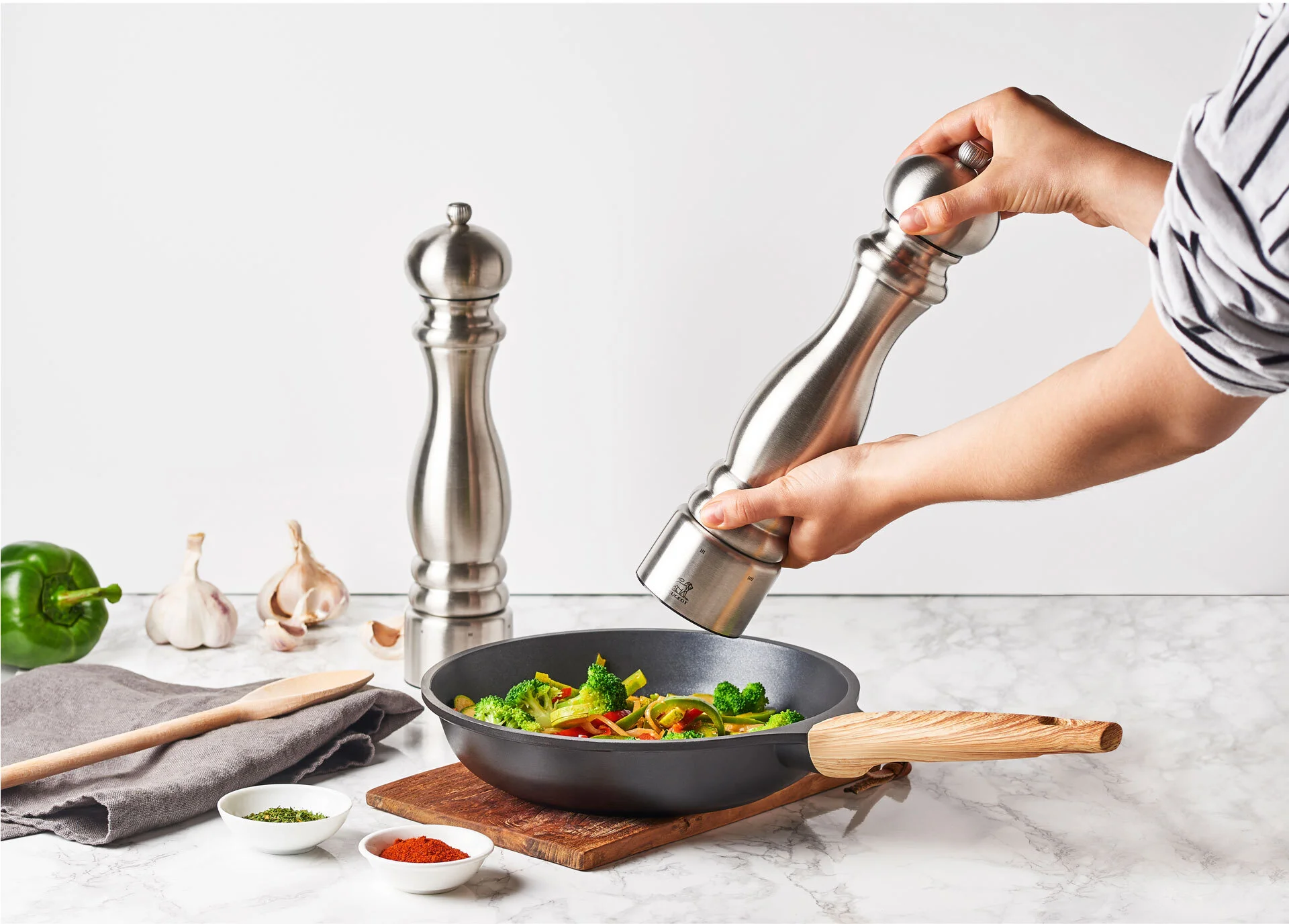 Wykonany ze stali nierdzewnej, stylowy i funkcjonalny młynek Peugeot Chcef spełnia oczekiwania najbardziej wymagających użytkowników i sprawdzi się nawet w najtrudniejszych warunkach. Jego korpus jest odporny na zarysowania, uszkodzenia, zmianę temperatur i użycie w wilgotnych warunkach (para). Jego ergonomiczny kształt sprawia, że jest niezwykle wygodny w użyciu. Równie piękny, jak funkcjonalny stanie się jednym z nieocenionych sprzymierzeńców Twojej kuchni.
