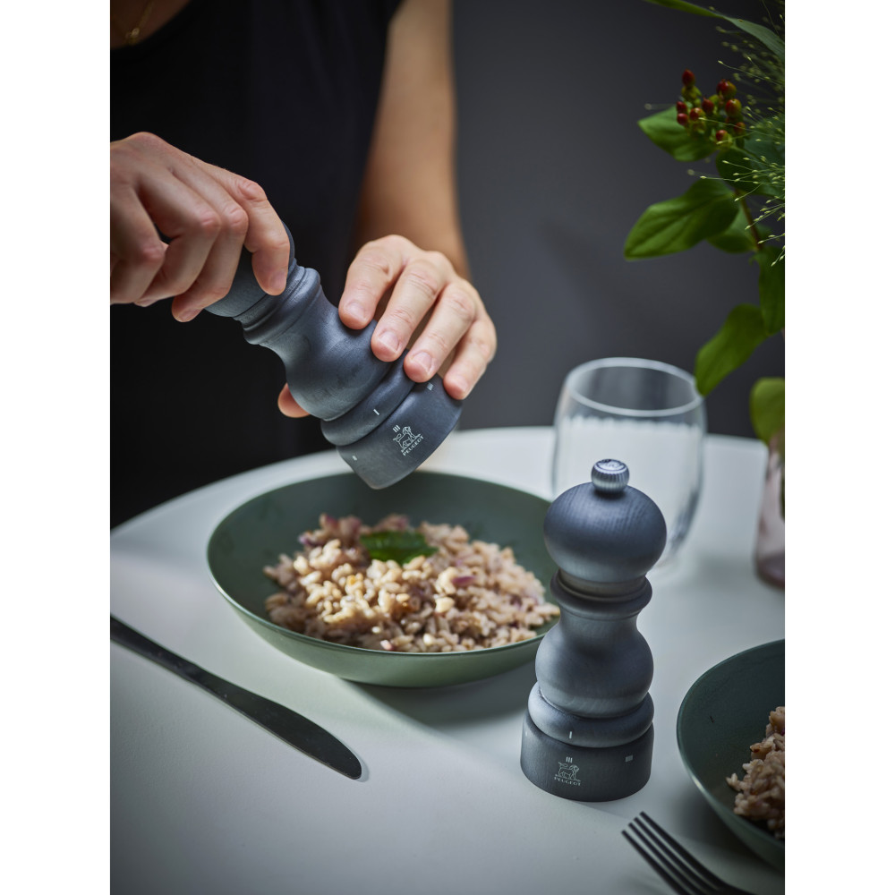 Antracytowa wersja PARIS, absolutny wzór wyglądu młynka autorstwa firmy PEUGEOT, rozpoznawalny pod każdą szerokością geograficzną. Lekko metaliczny kolor symbolizuje połączenie drewna i stali uwypuklając rysunek słojów drewna. Wyprodukowany z drewna pozyskiwanego z lasów posiadających certyfikat PEFC ™ pokrytego farbą i lakierem na bazie wody, spełnia wszystkie wymagania jakim powinien odznaczać się produkt projektowany z poszanowaniem środowiska naturalnego.