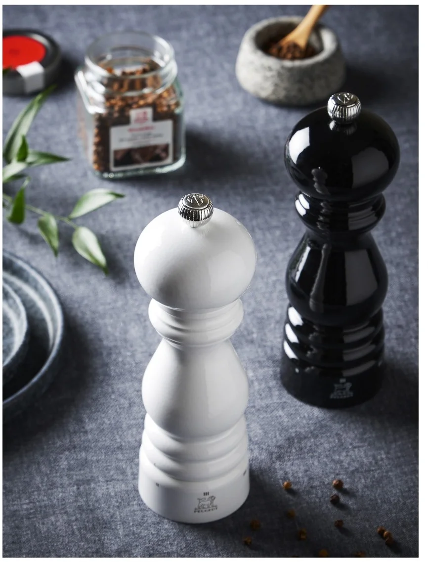 Młynek Peugeot Paris o kultowym kształcie, któremu nadano nowoczesne wykończenie w stylu glamour. Neutralna, elegancka biel i lakierowanie na wysoki połysk przyciągnie spojrzenia pełne zachwytu. Jego ergonomiczny kształt sprawia, że jest niezwykle wygodny w użyciu. Równie piękny, jak funkcjonalny stanie się jednym z nieocenionych sprzymierzeńców Twojej kuchni.