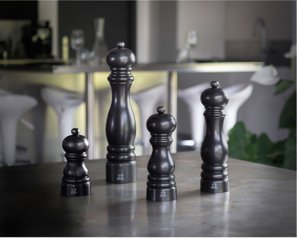 Młynki PARIS odzwierciedlają niepowtarzalne dziedzictwo firmy PEUGEOT jako producenta młynków. Współczesna reinterpretacja klasycznego kształtu młynka PARIS jednoznacznie odwołuje się do oryginalnego designu będącego symbolem marki.